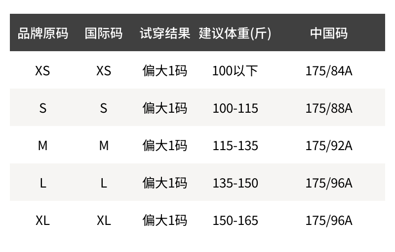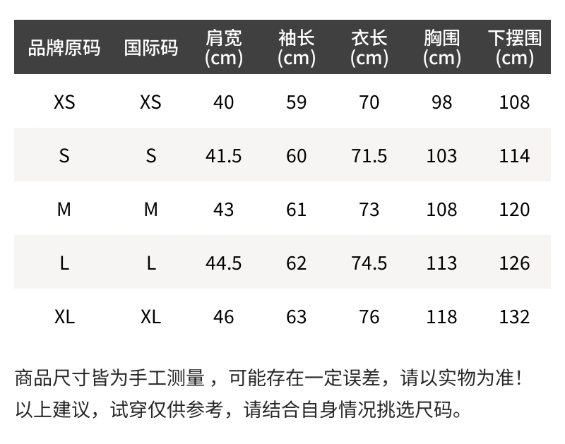 - 尺码说明