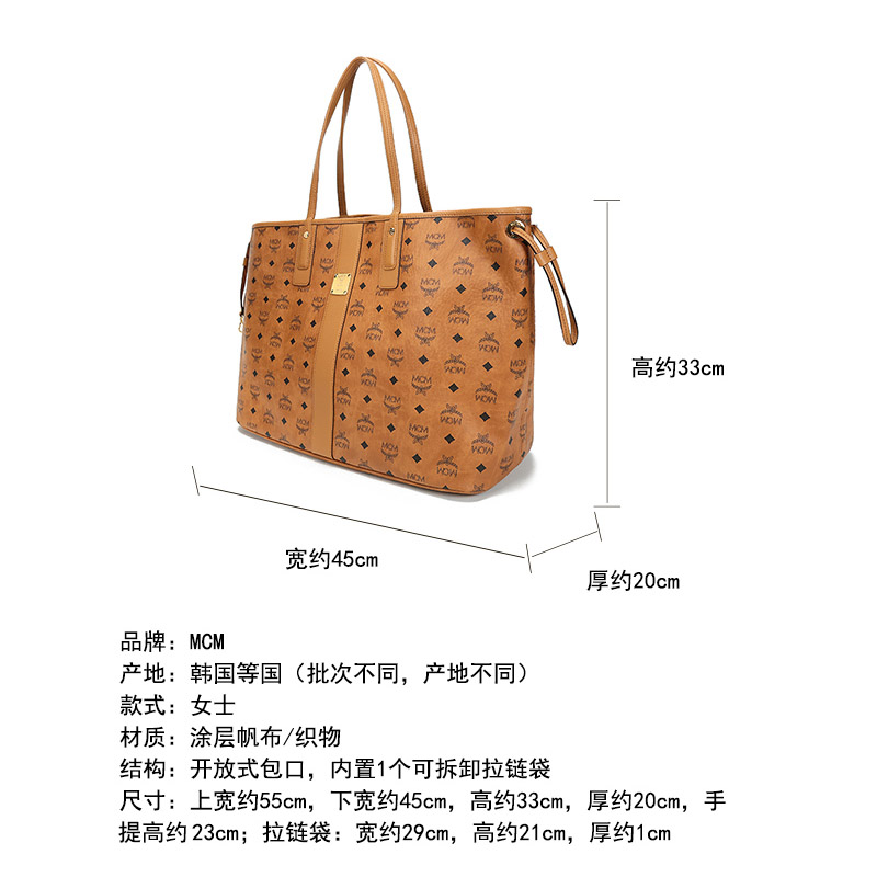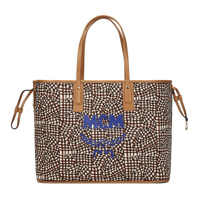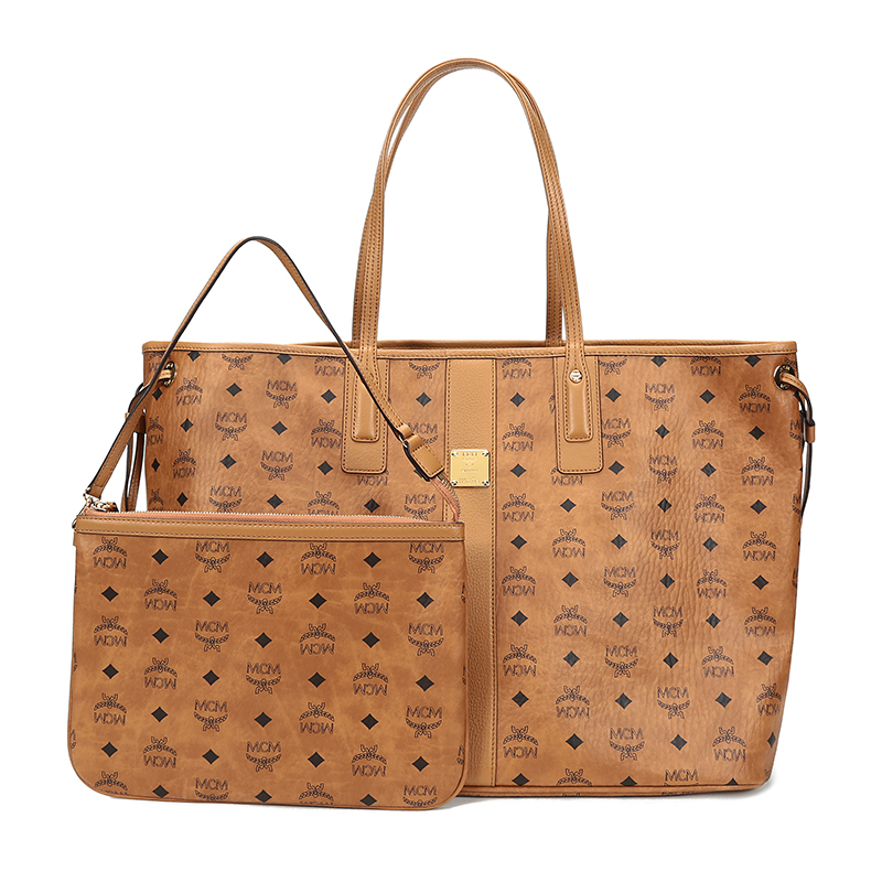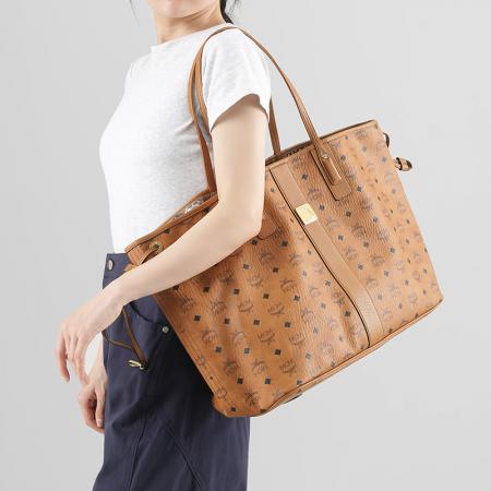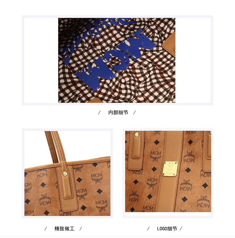 自营MCM 女包 女士双面包子母包手提单肩包电脑包超大号购物袋托特包干邑色多色格纹LOGO图案 MWPAAVI01CO001