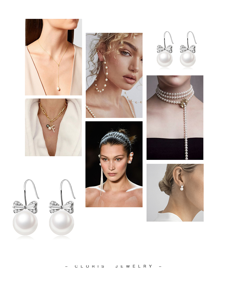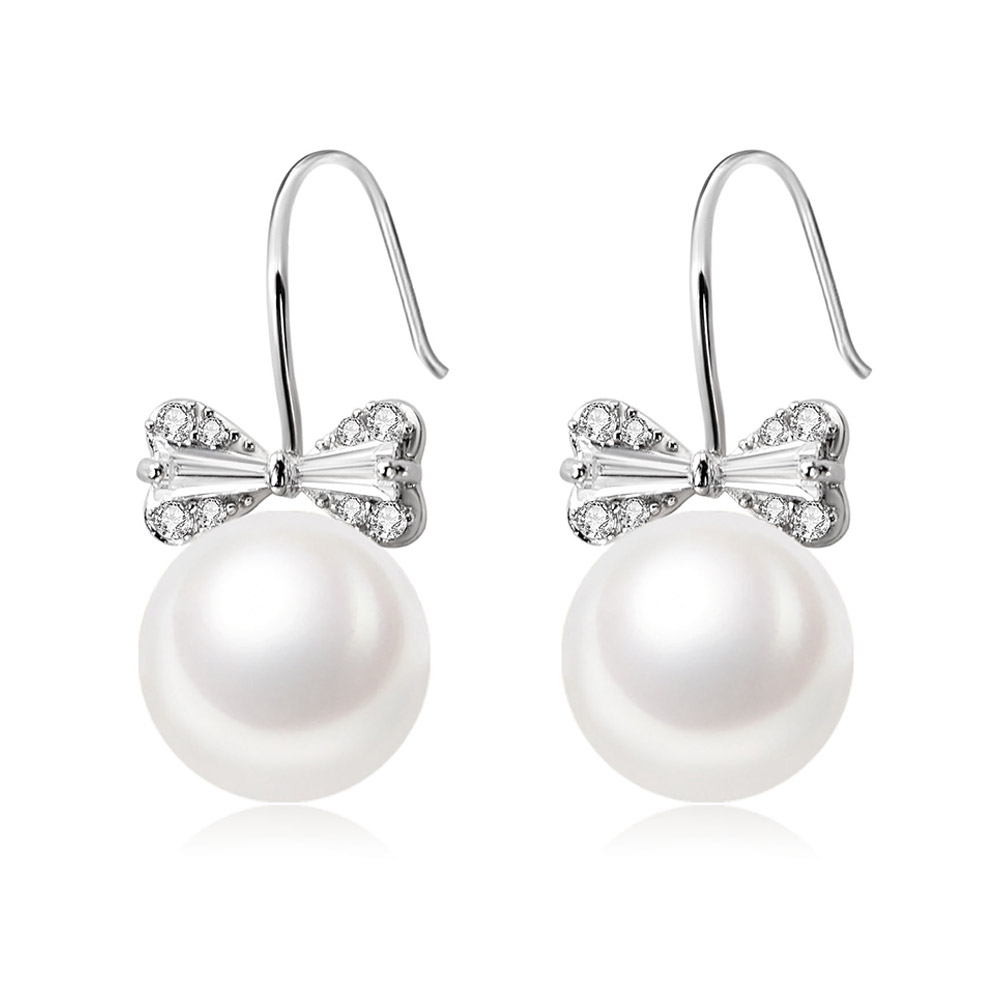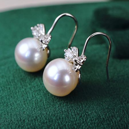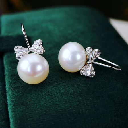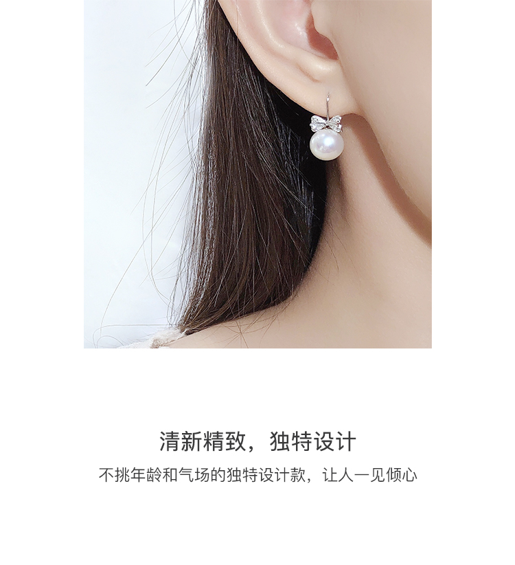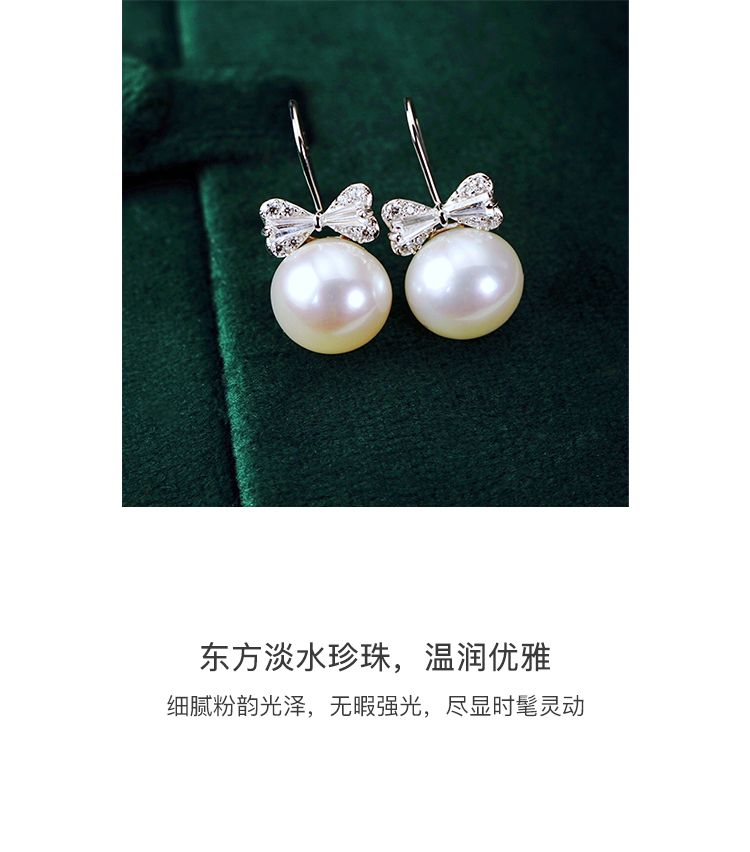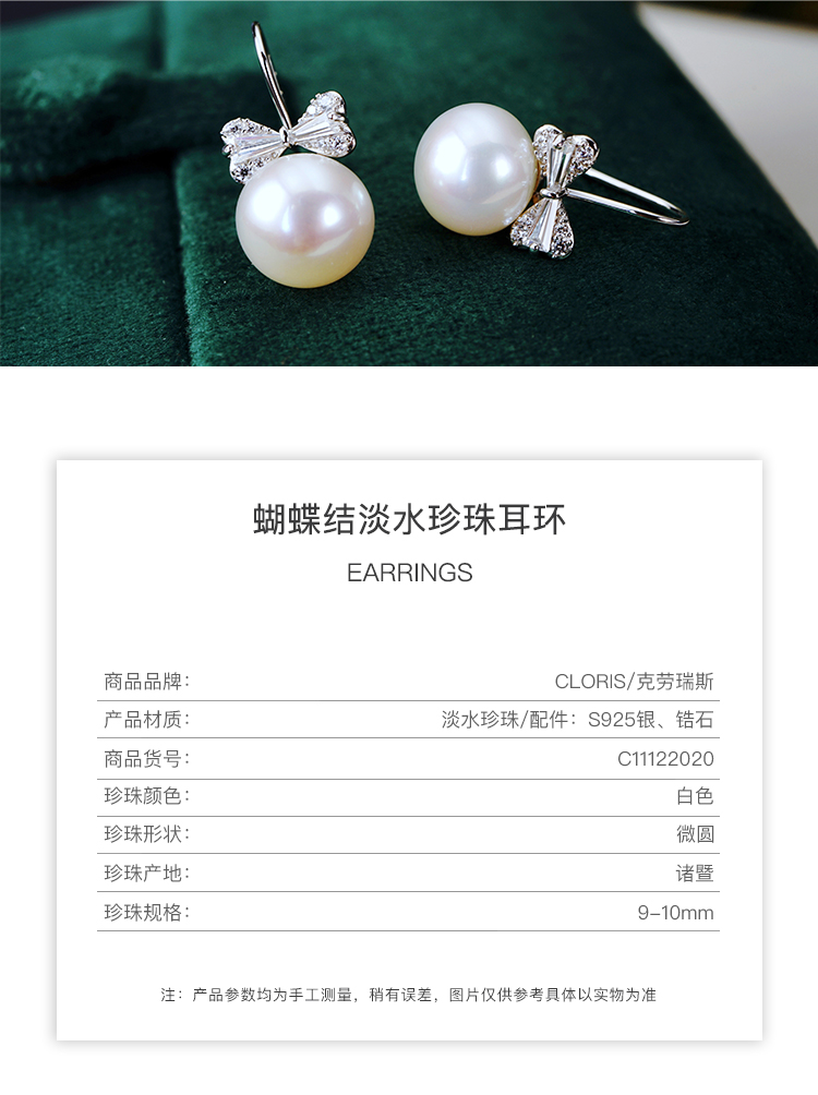 CLORIS 克劳瑞斯 【好物推荐】925银 蝴蝶结淡水珍珠 耳钉 耳环 耳饰 9-10mm