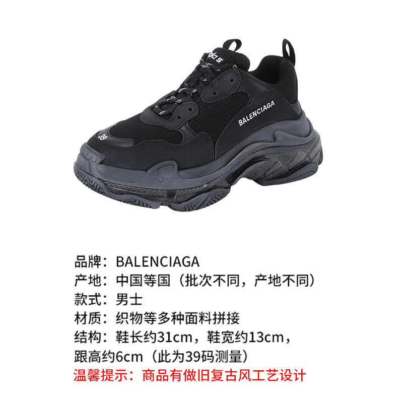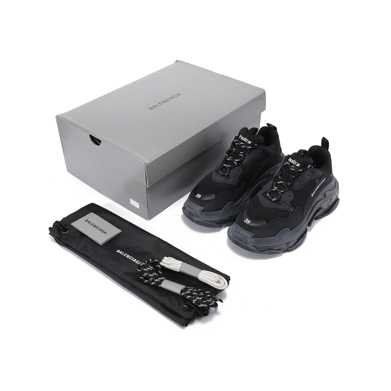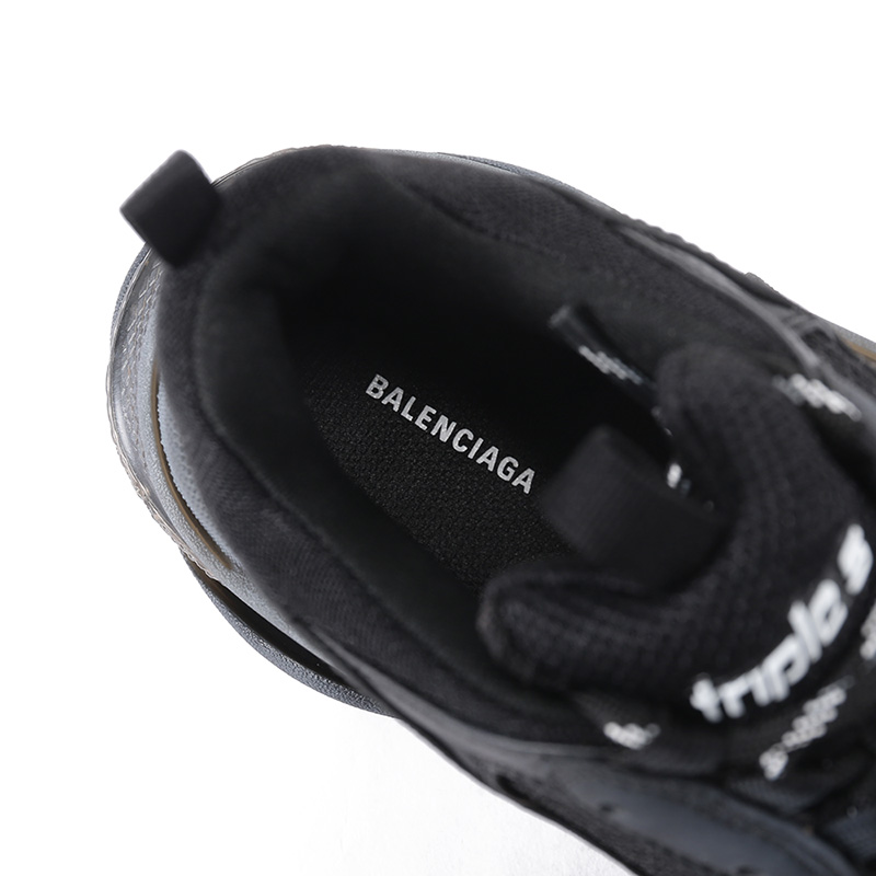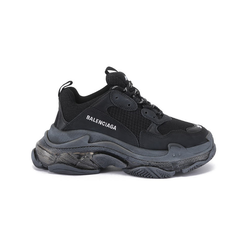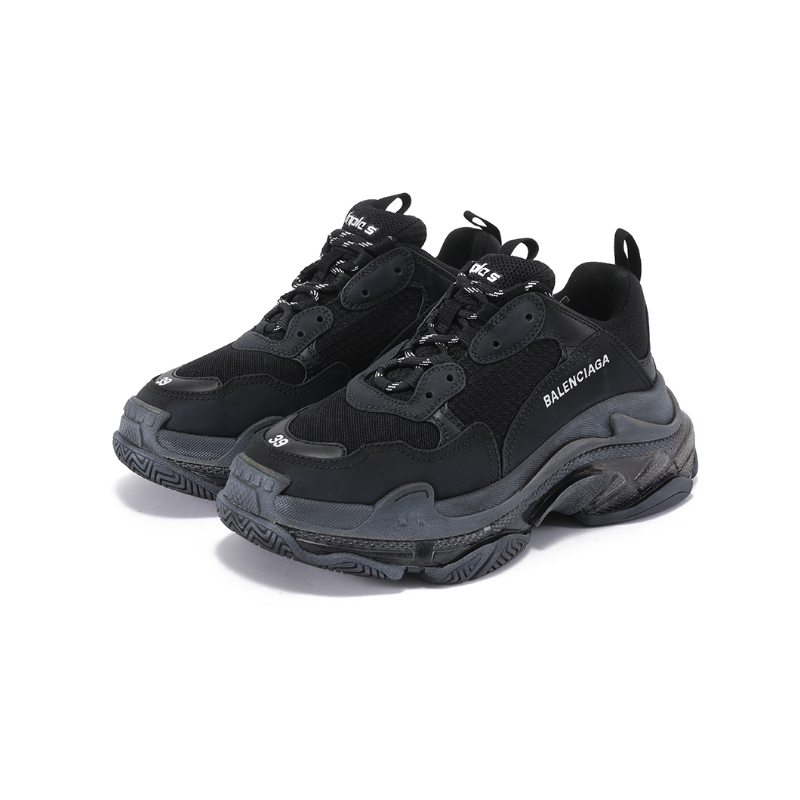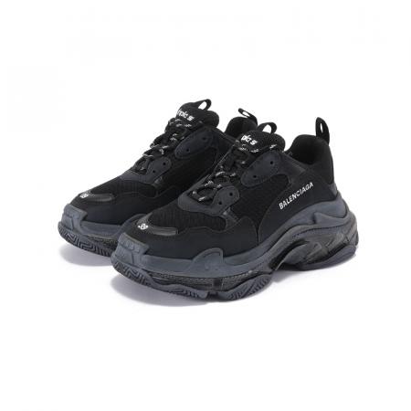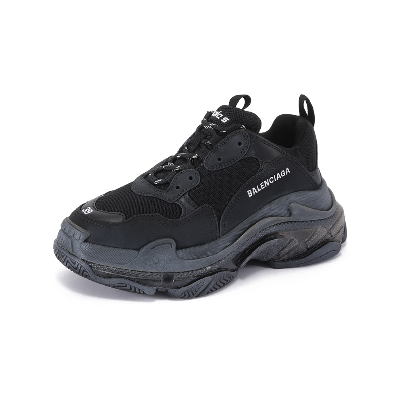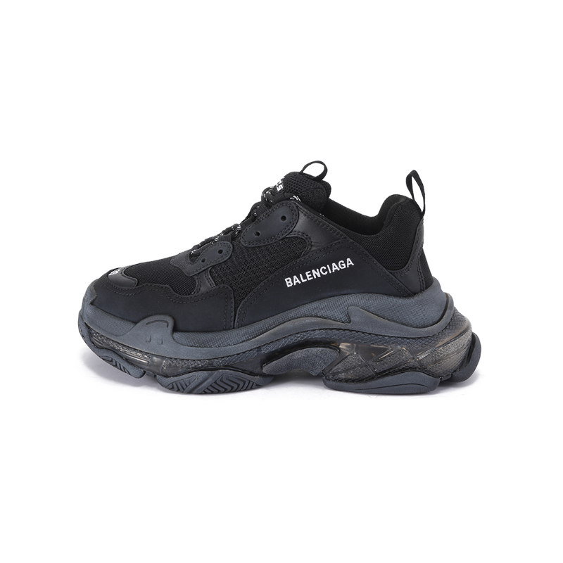 自营Balenciaga 巴黎世家 男士织物配皮气垫底复古做旧厚底系带休闲运动鞋老爹鞋黑色时尚经典 541624 W2FB1 1000