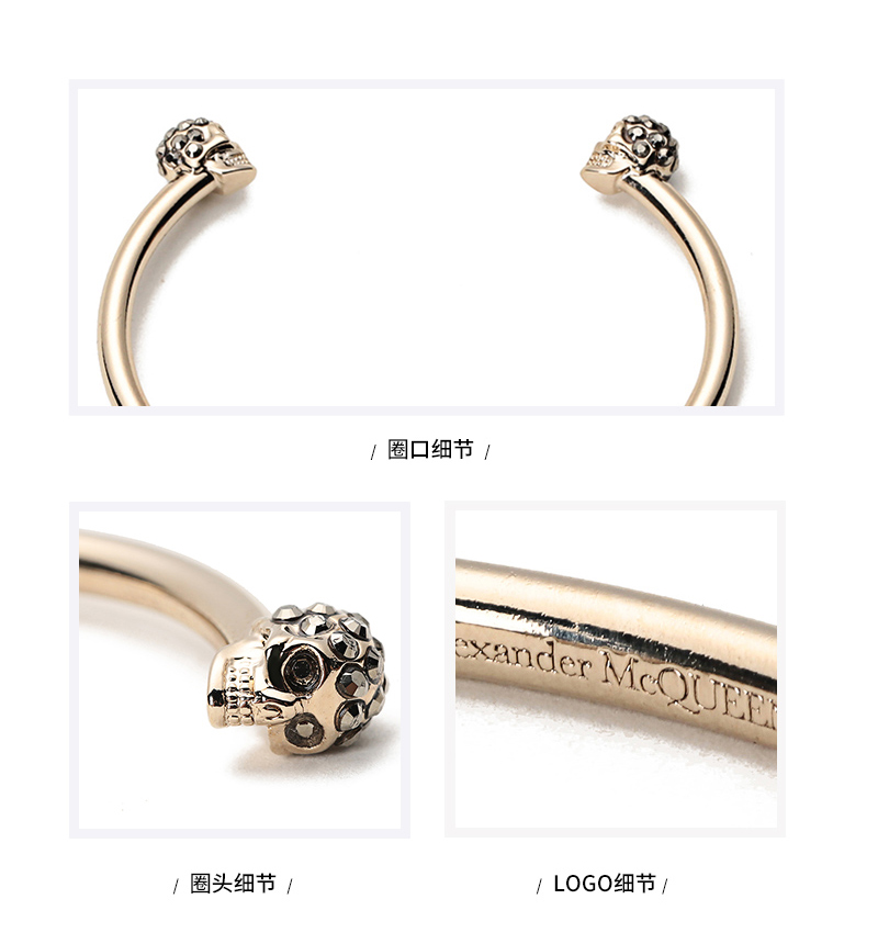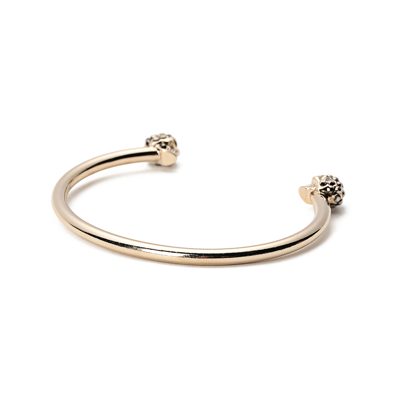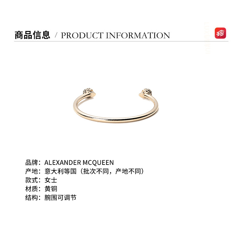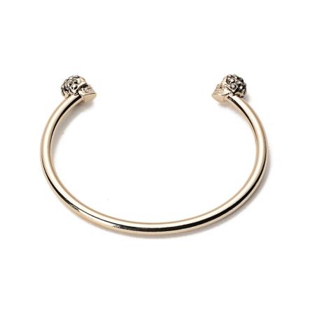 自营Alexander Mcqueen 亚历山大·麦昆 女士黄铜双骷髅头手镯手环浅金色 550499 J160K 7285
