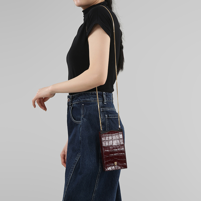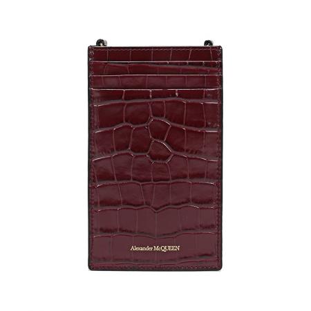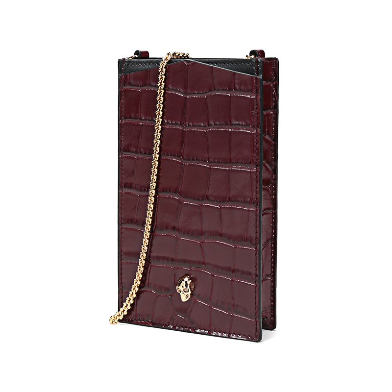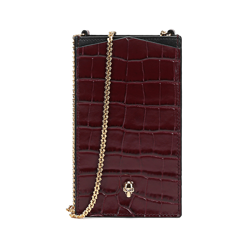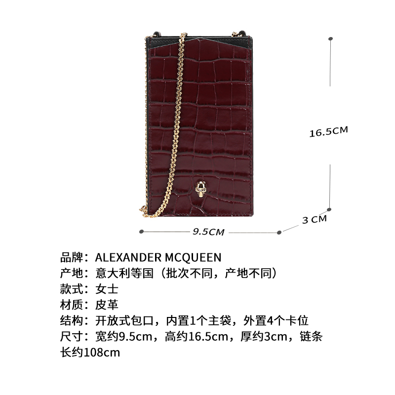自营Alexander Mcqueen 亚历山大·麦昆女包 女士皮革骷髅头单肩斜挎包新娘婚包手机包酒红色 632035 1JMHG 6055