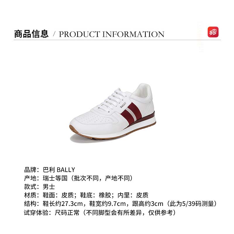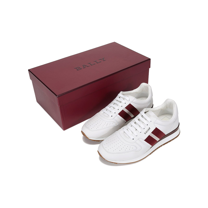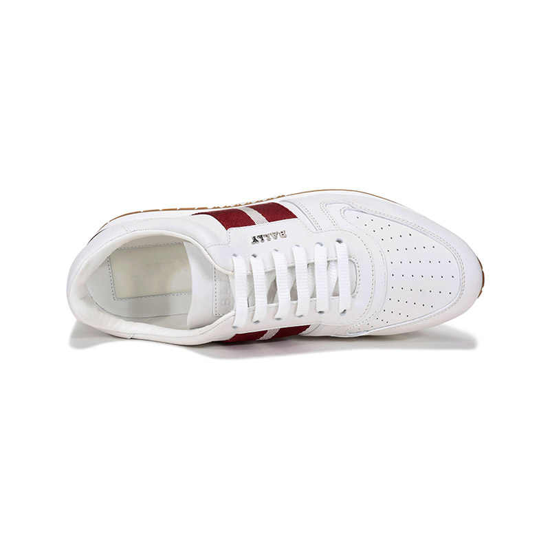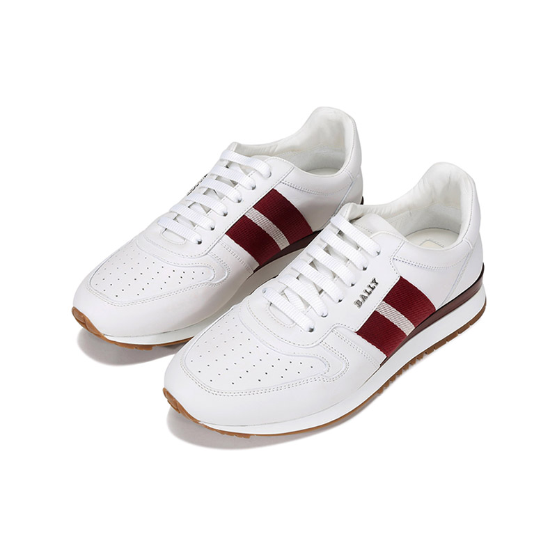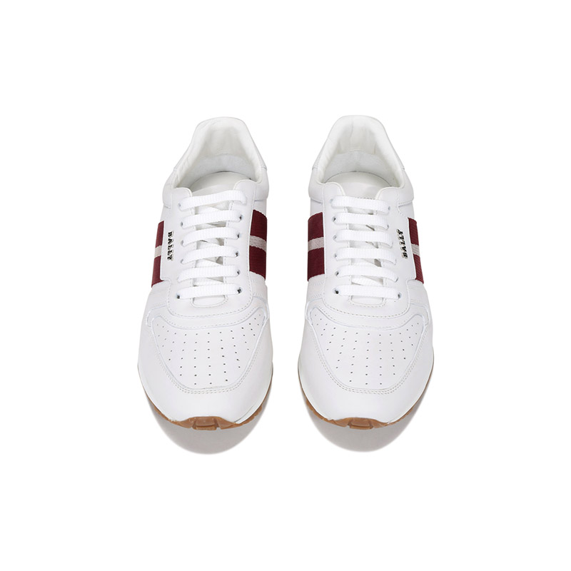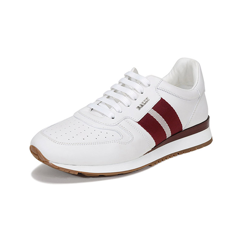 自营Bally 巴利 男士皮质系带休闲鞋运动鞋白色红白条纹厚底轻便小白鞋 ASTEL FO 517 6231539