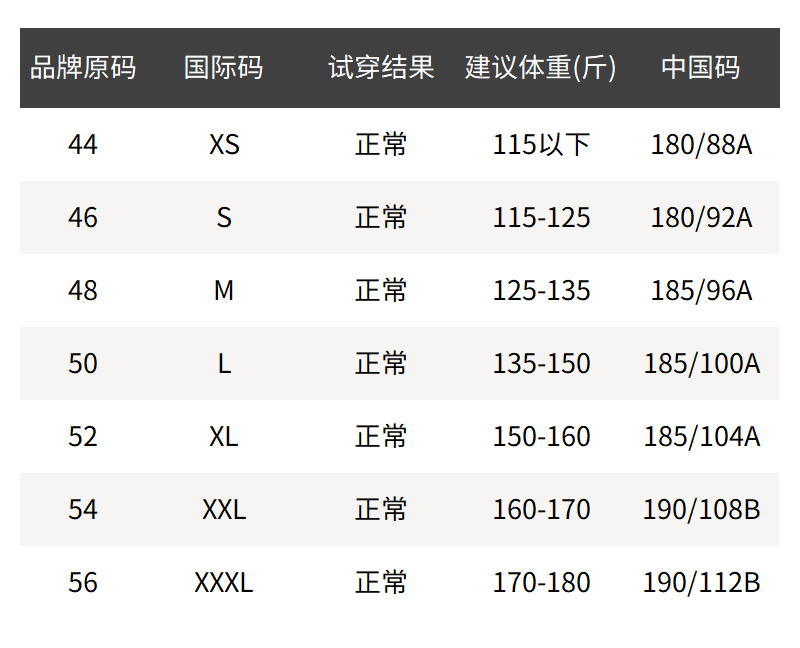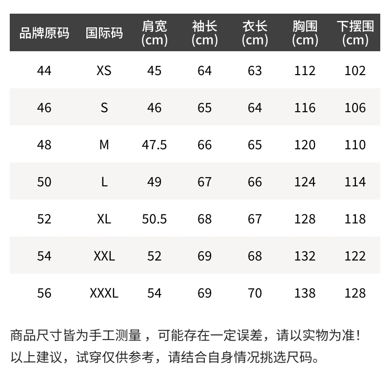 - 尺码说明