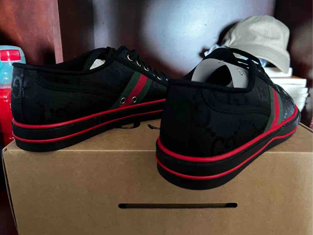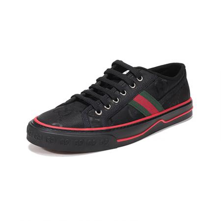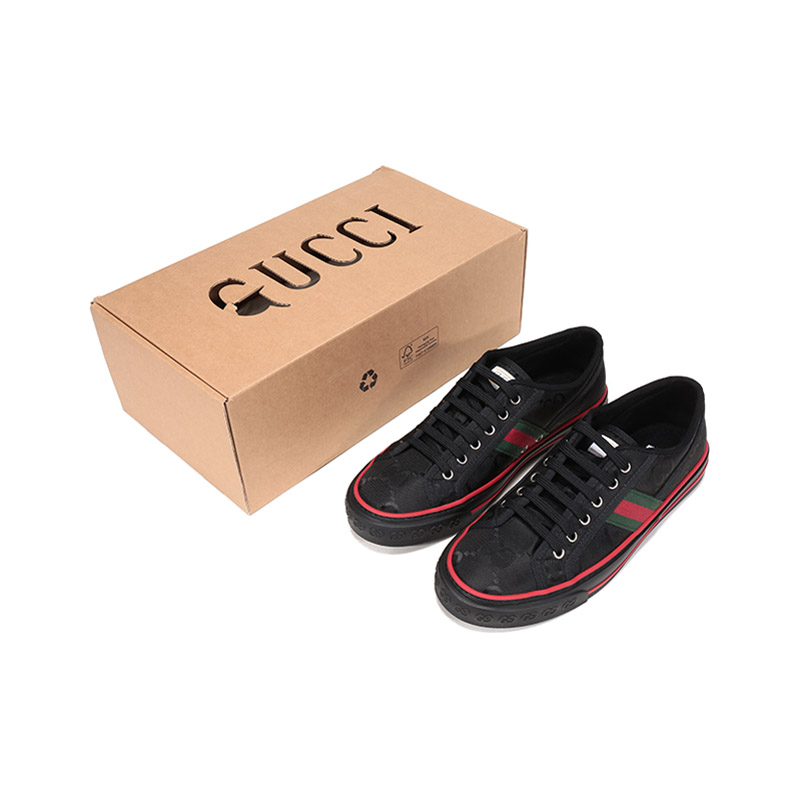 自营Gucci 古驰 男士Gucci Off The Grid系列织物系带双G提花休闲运动鞋板鞋黑色红绿条纹 628709 H9H70 1072