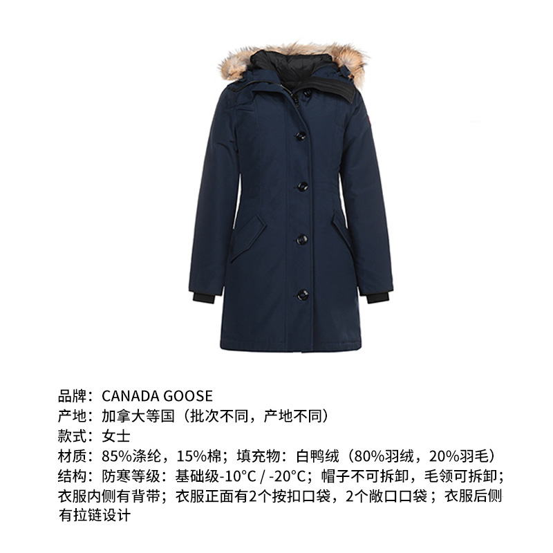 自营Canada Goose 加拿大鹅 女士Rossclair 鸭绒连帽派克大衣羽绒服大西洋海军蓝 2580L 63