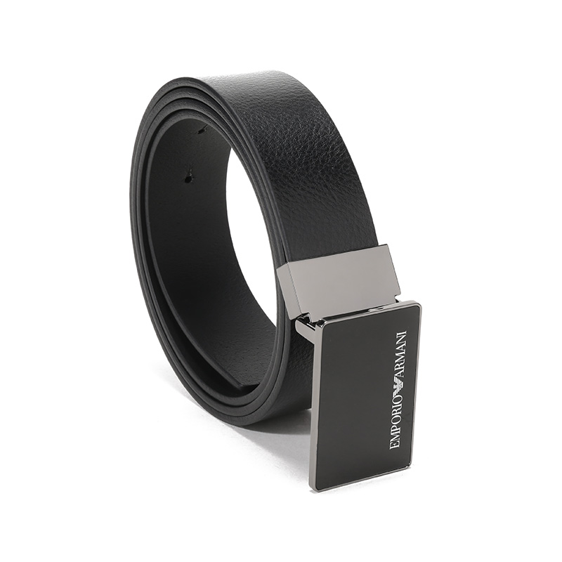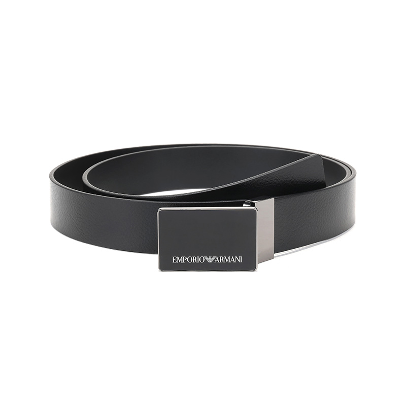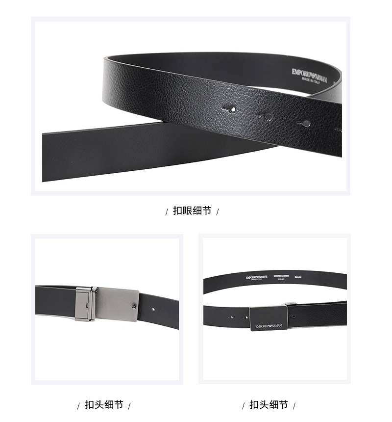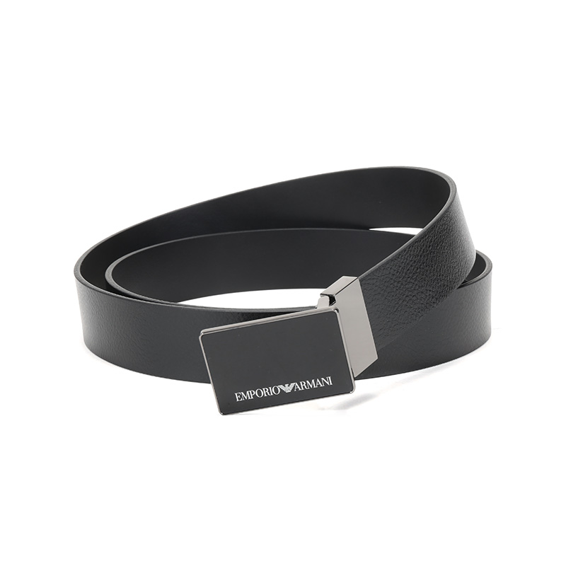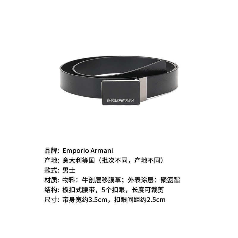 自营Emporio Armani 阿玛尼 男士黑色牛剖层移膜革/聚氨酯板扣式皮带腰带3.5cm Y4S427 YTU7J 84372