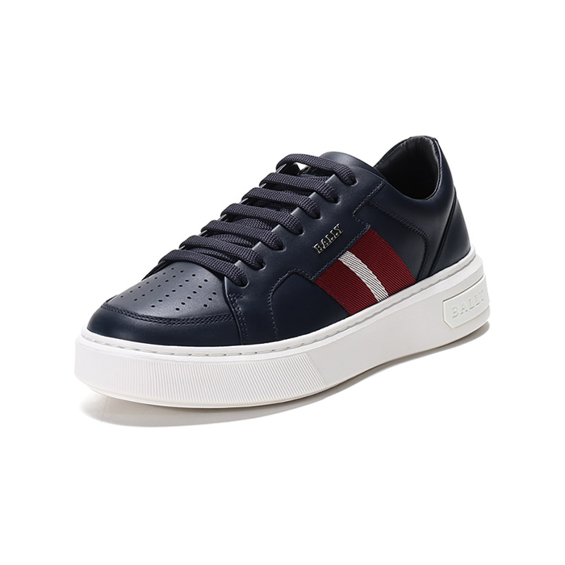 自营Bally 巴利 【新品】男士Lift系列皮质系带厚底鞋休闲运动鞋本白色红白条纹小白鞋 MOONY 07 6236586