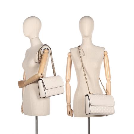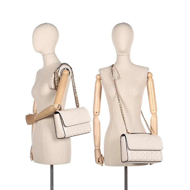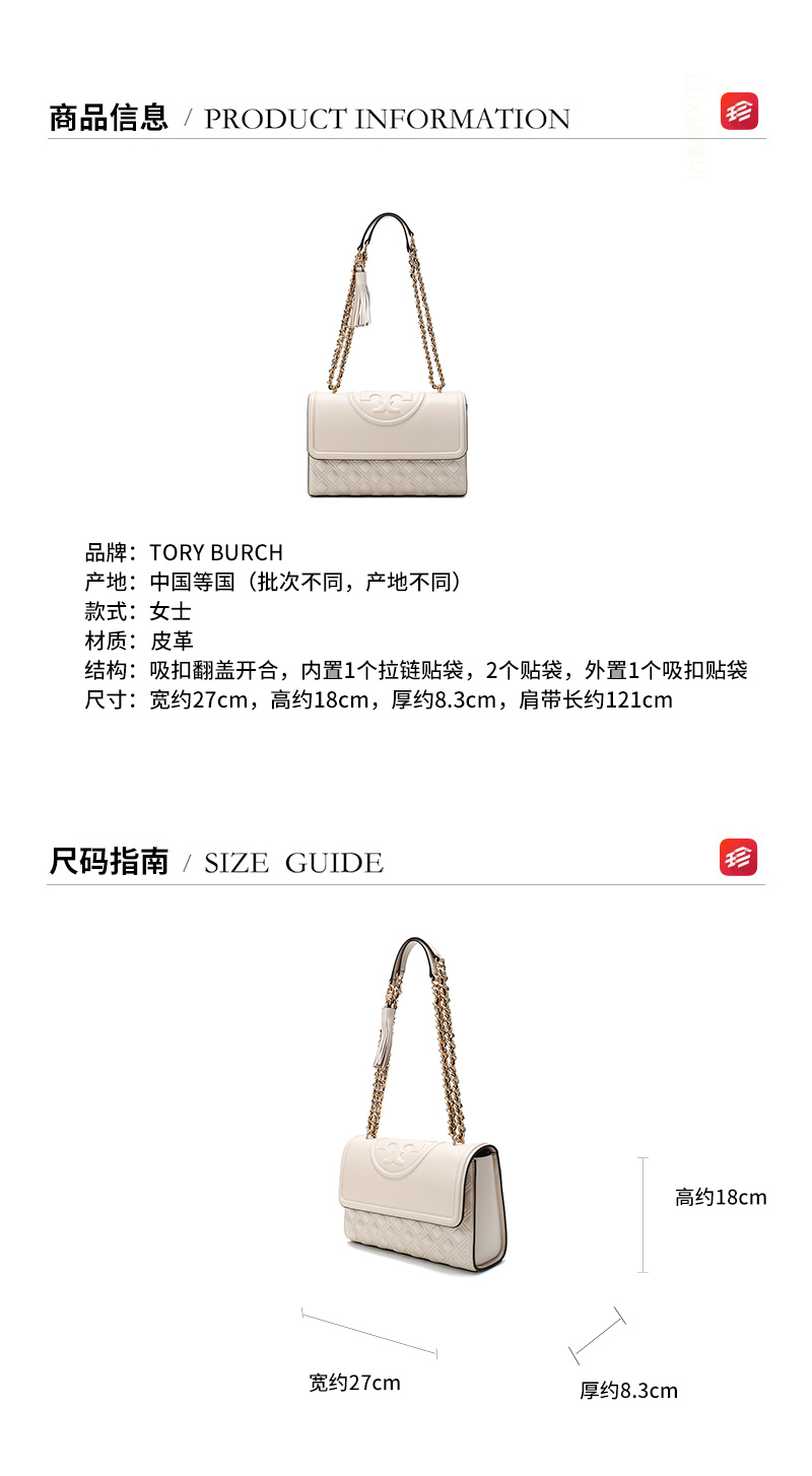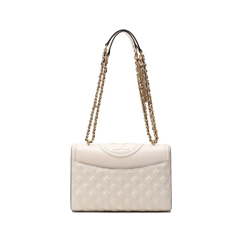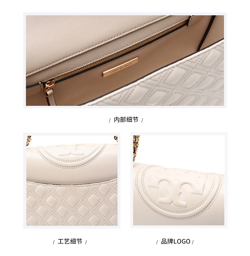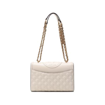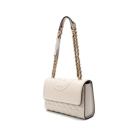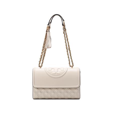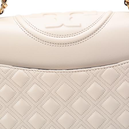 自营Tory Burch 汤丽柏琦 女包 女士FLEMING系列皮革单肩斜挎包奶油色中号 76997 122