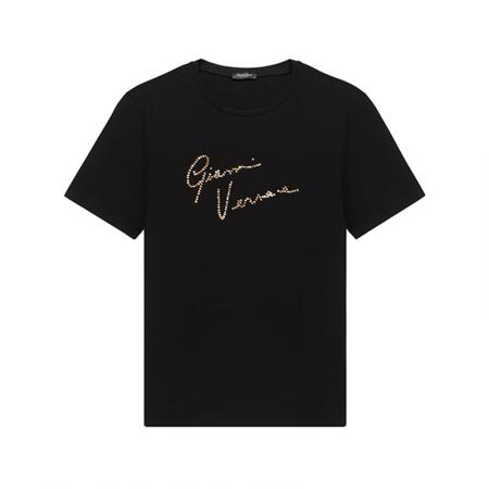 自营Versace 范思哲 女士棉质圆领短袖T恤黑色Gianni Versace手写签名图案标准版型 A88730 A228806 A1008