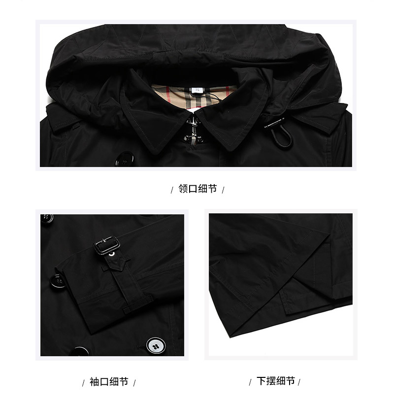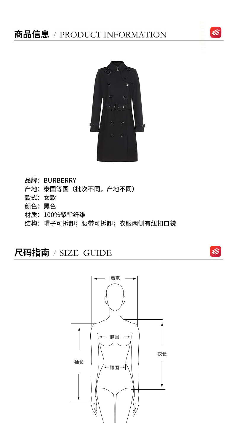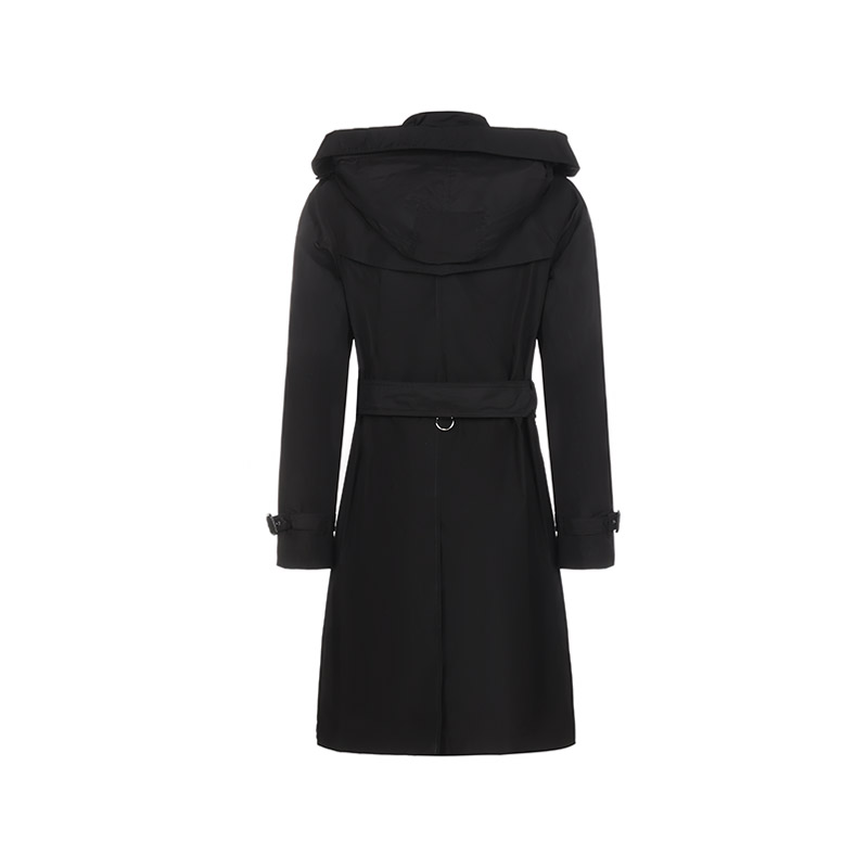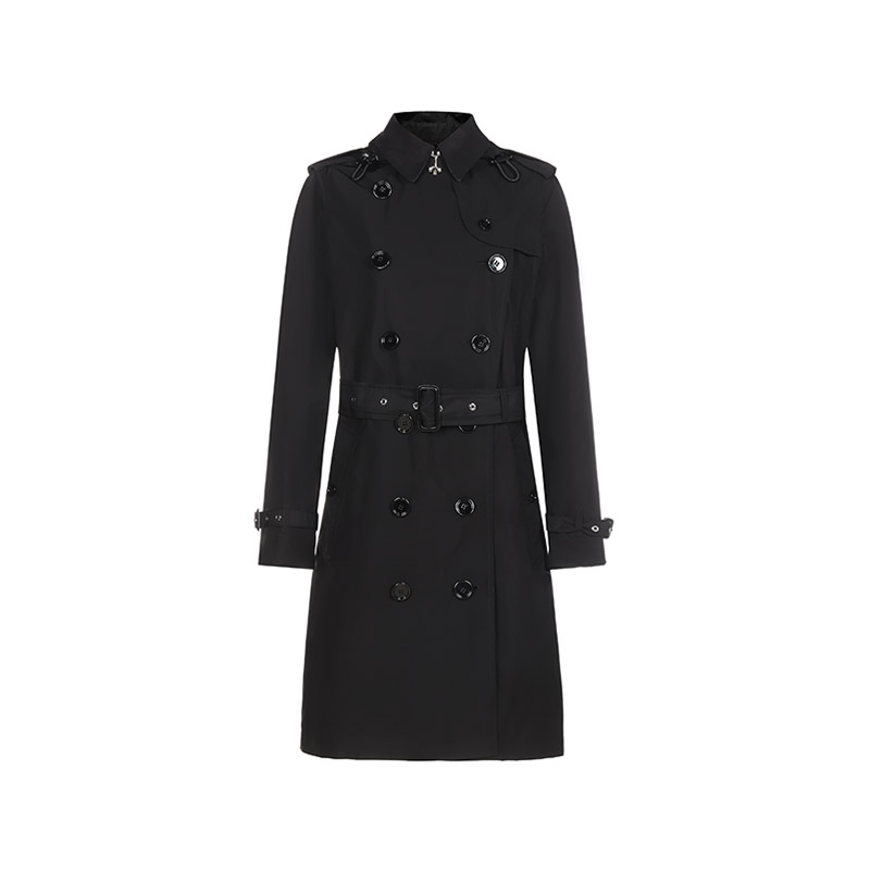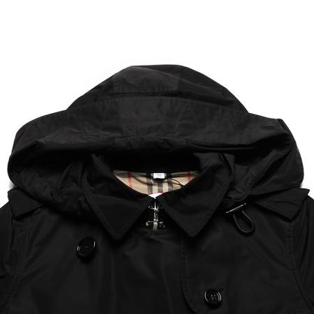自营Burberry 博柏利 女款肯辛顿版型聚酯纤维中长款连帽可拆 Trench风衣外套黑色 80335201