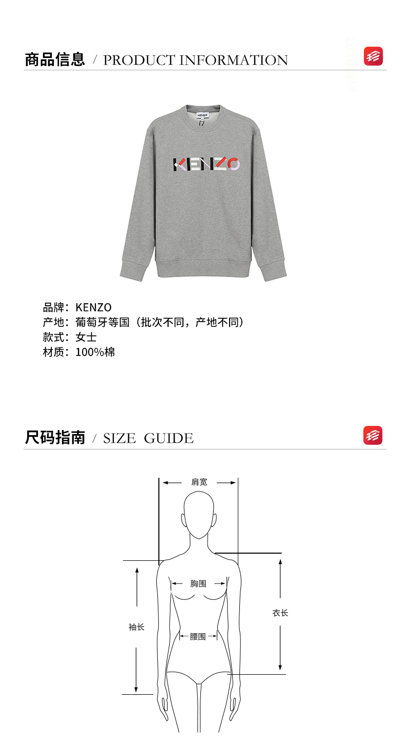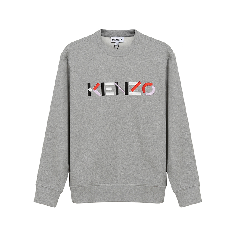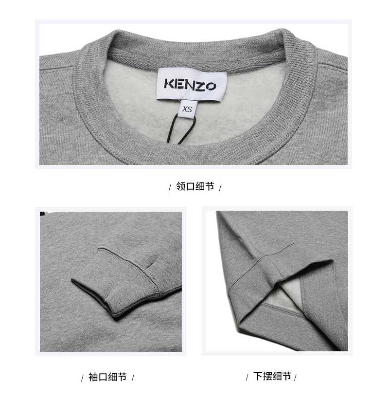 自营Kenzo 高田贤三 女士棉质加绒款圆领长袖卫衣运动衫珍珠灰LOGO刺绣 FA6 2SW820 4MO 94A