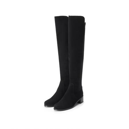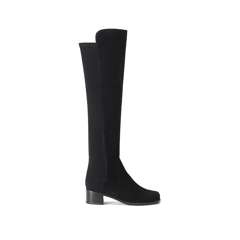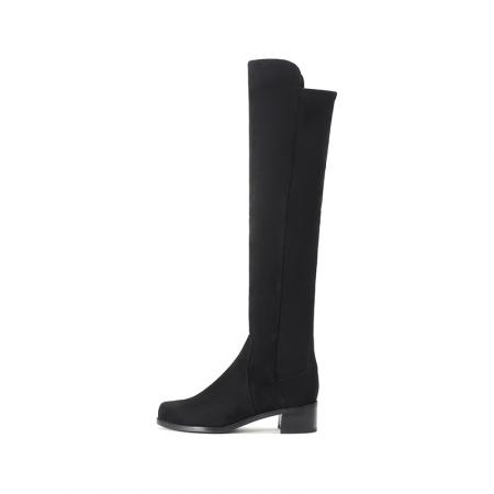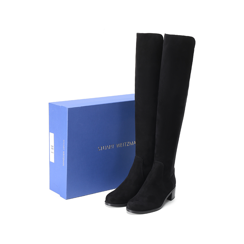 自营Stuart Weitzman 思缇韦曼 女士绒面革/织物过膝长靴黑色 RESERVE BLK SRG SUE STR GABRDNE
