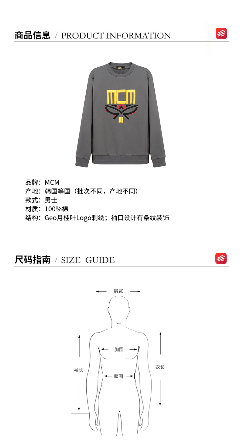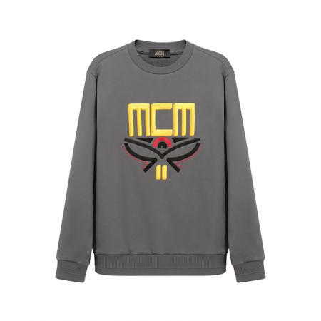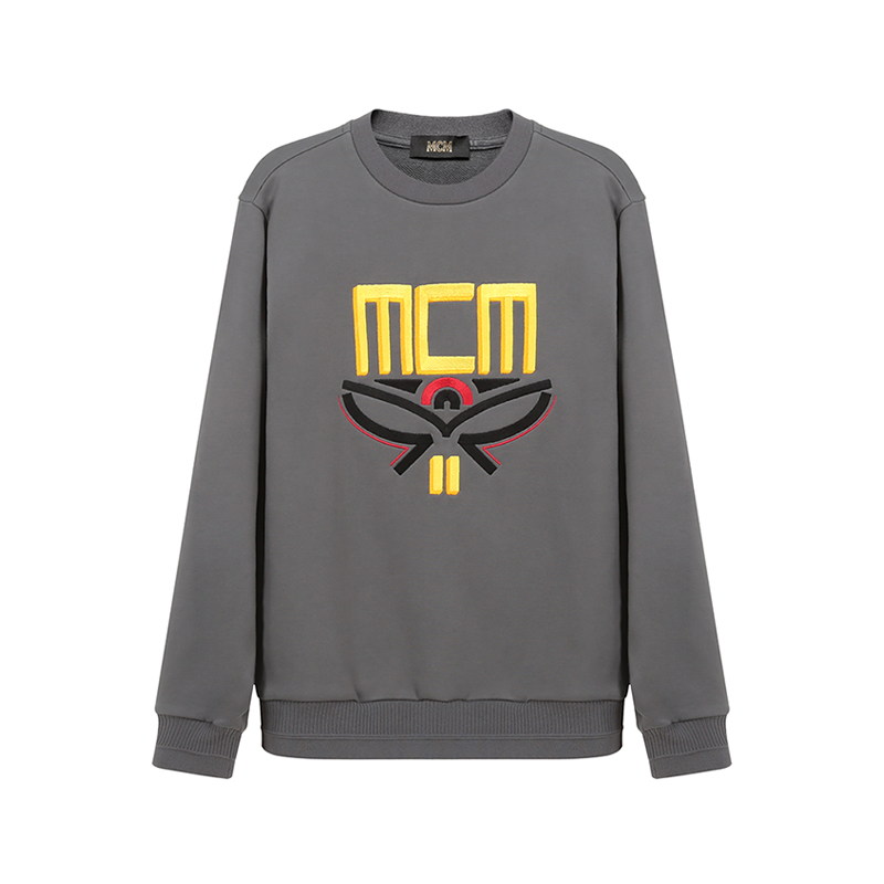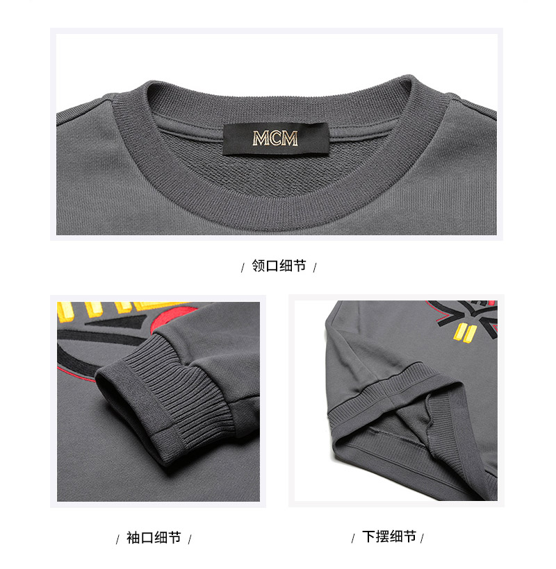 自营MCM 男士棉质圆领长袖卫衣运动衫灰色Geo月桂叶LOGO刺绣 MHABSMM04EC