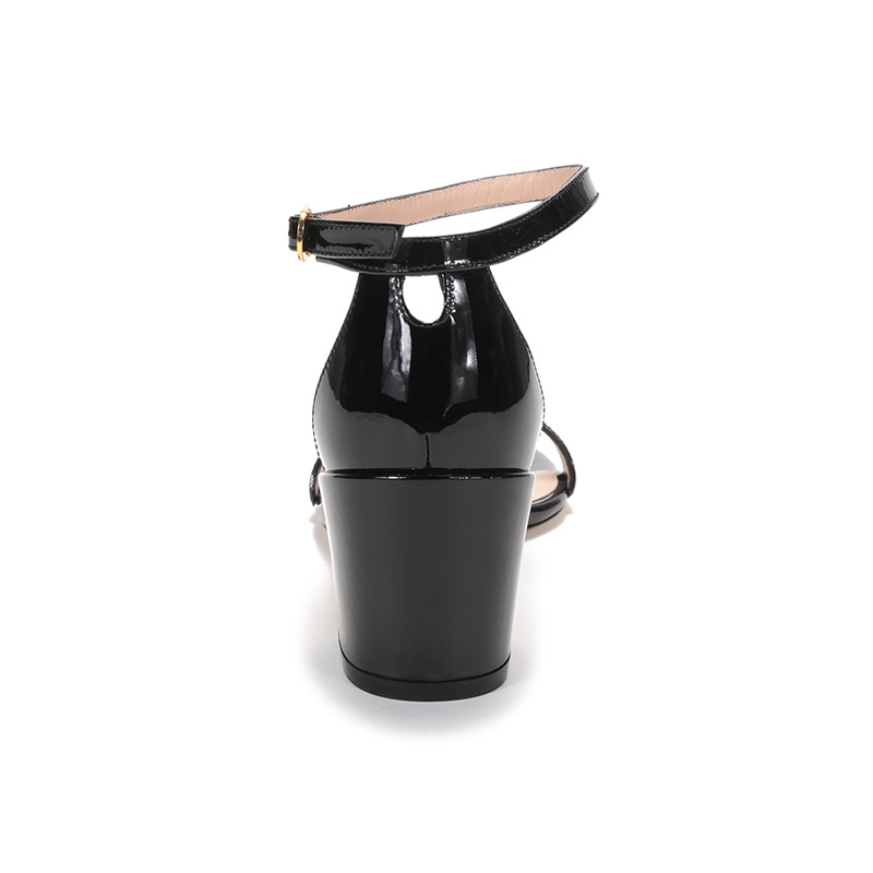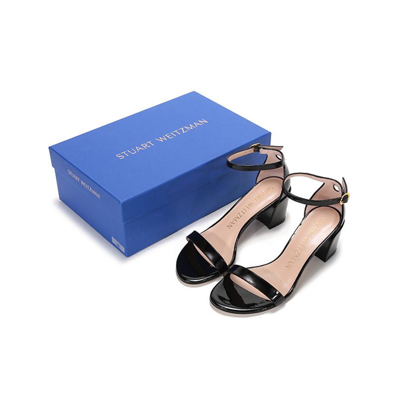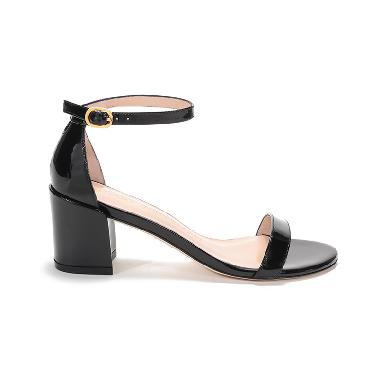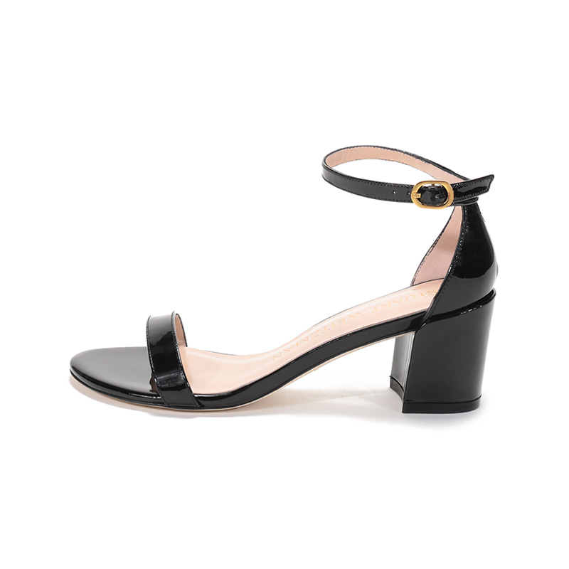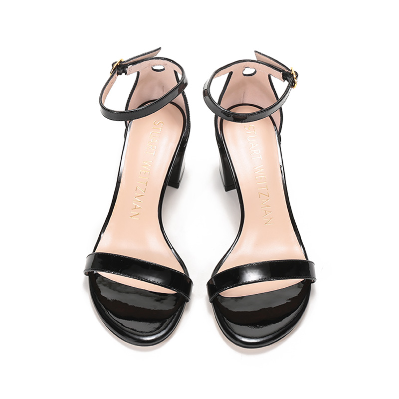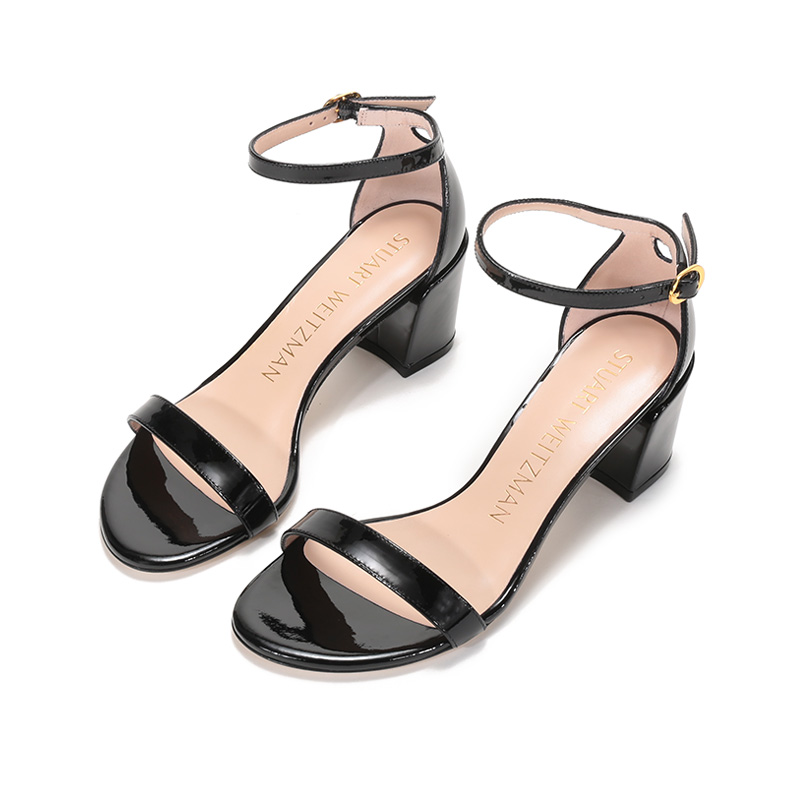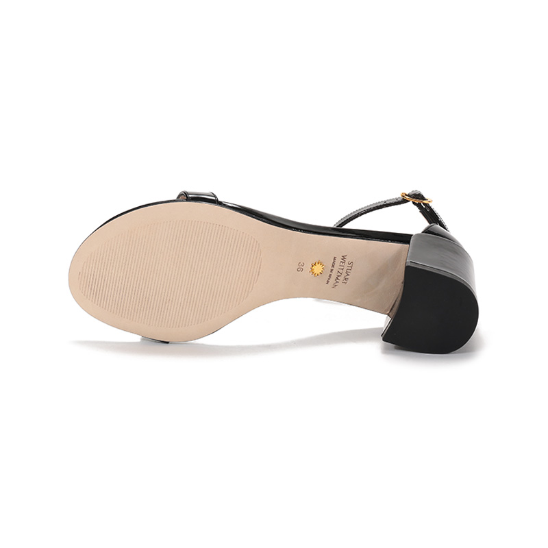 自营Stuart Weitzman 思缇韦曼 女士皮革一字带粗跟凉鞋高跟鞋黑色跟高6cm SIMPLE BLK PAT PATENT