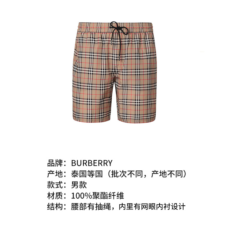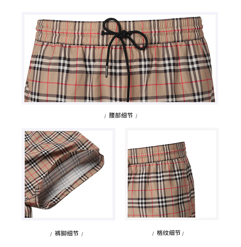 自营Burberry 博柏利 男士抽绳式短裤沙滩裤典藏米色格纹 80172951