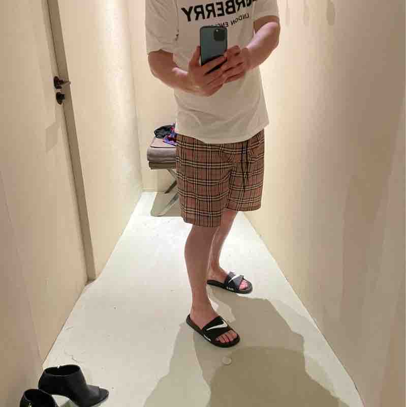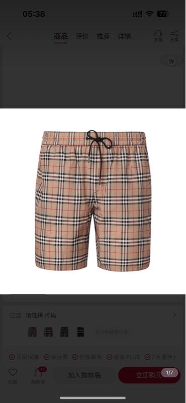 自营Burberry 博柏利男士抽绳式泳裤短裤沙滩裤典藏米色格纹 80172951