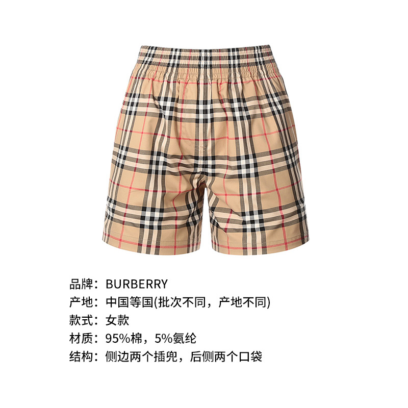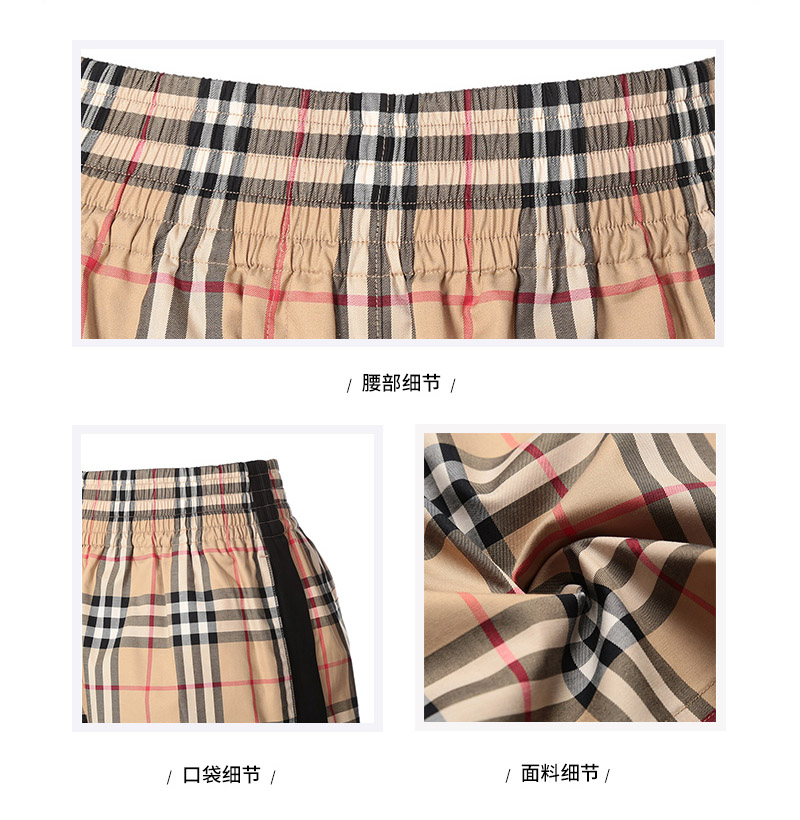 自营Burberry 博柏利女款棉质休闲高腰短裤典藏米色Vintage格纹 80405981