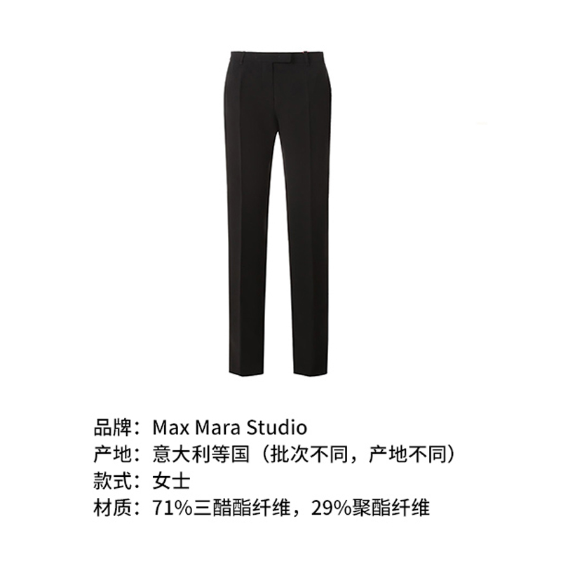 自营Max Mara Studio 麦丝玛拉 女士三醋酯纤维休闲西裤长裤黑色 61310117/61360629 JERTA 001