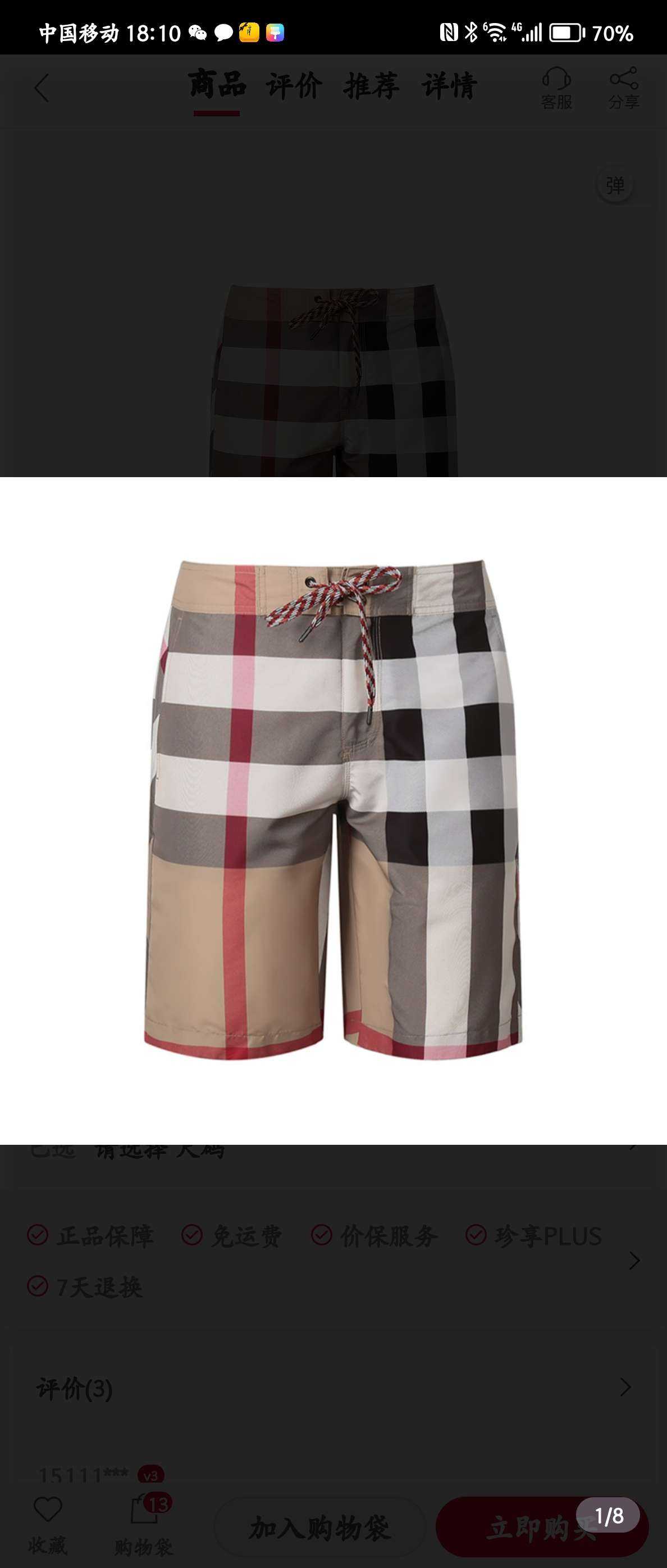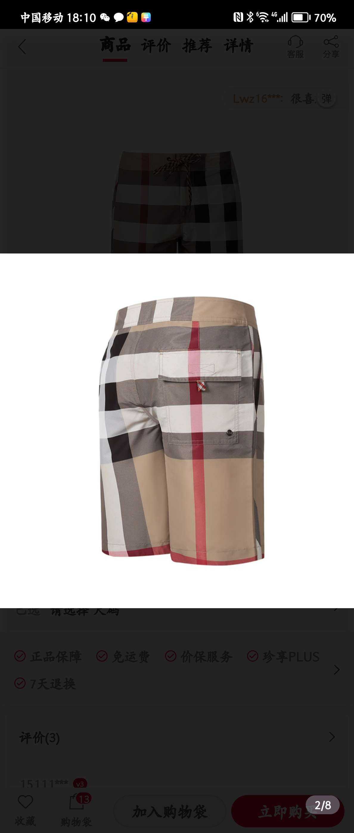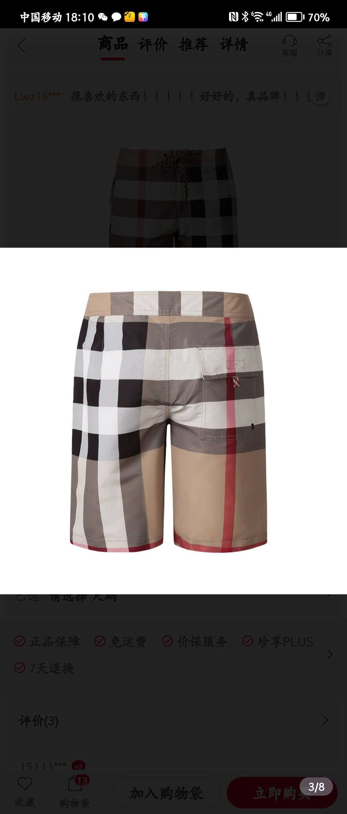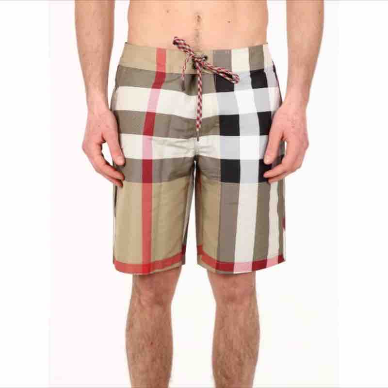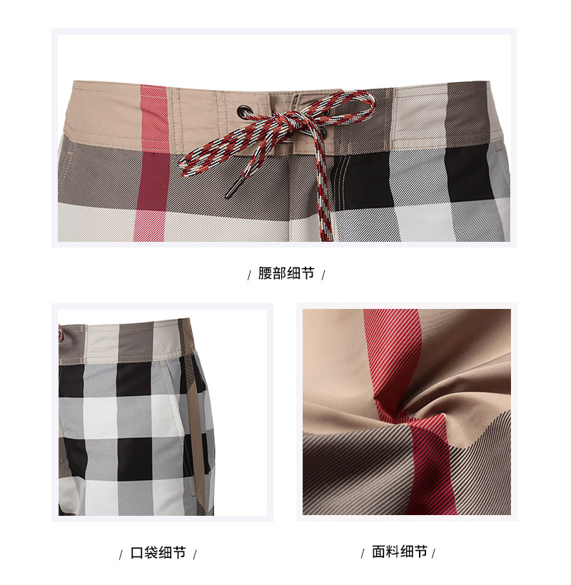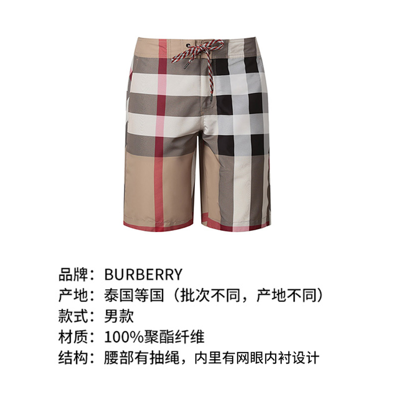 自营Burberry 博柏利男士聚酯纤维沙滩裤休闲短裤典藏米色格纹 80226471