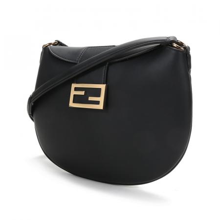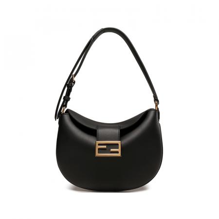 自营Fendi 芬迪 女包 女士牛皮手提单肩包腋下包牛角新月包黑色小号 8BR790 AF2P F0KUR