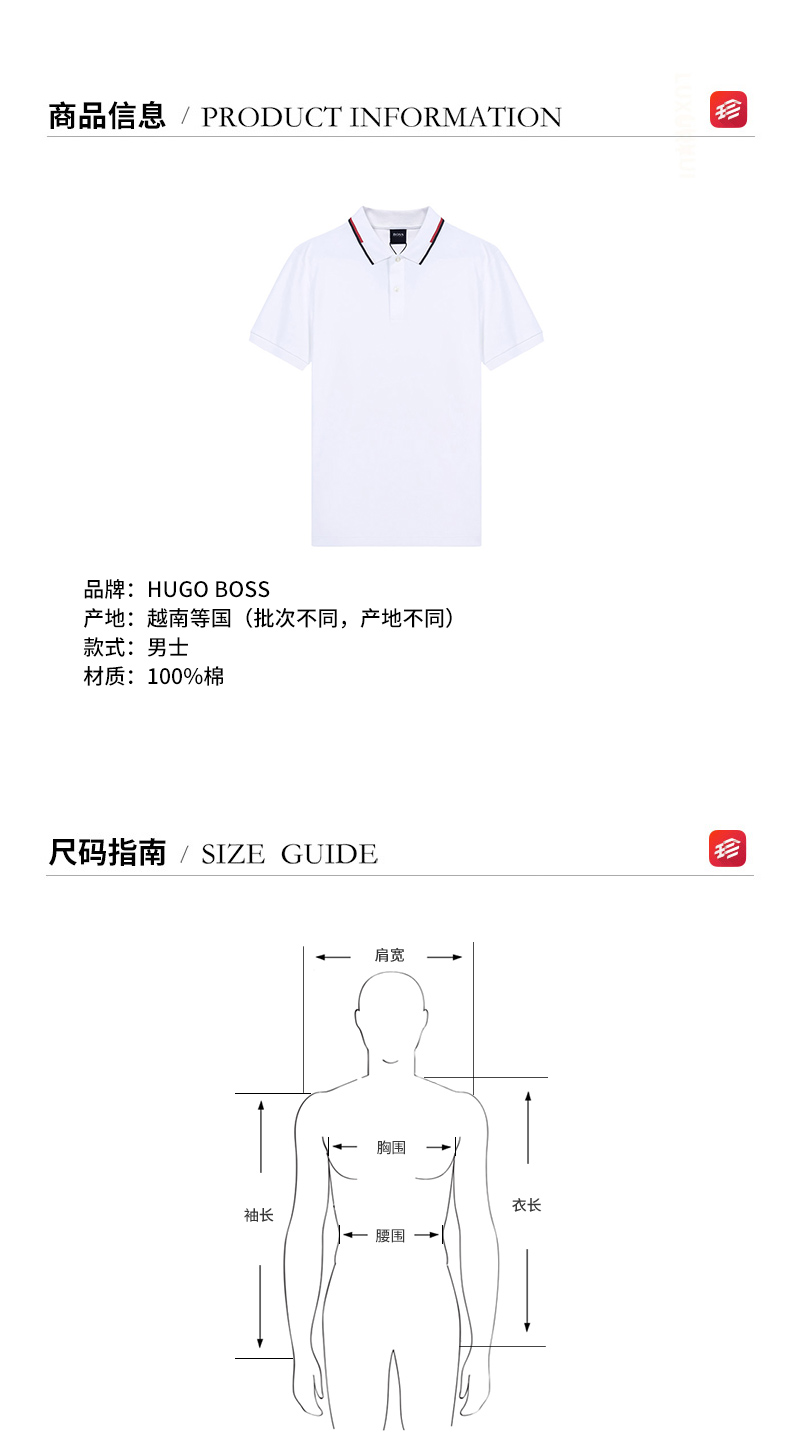 自营Hugo Boss 雨果博斯 男士棉质短袖POLO衫白色 50448657 100