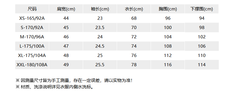 - 尺码说明