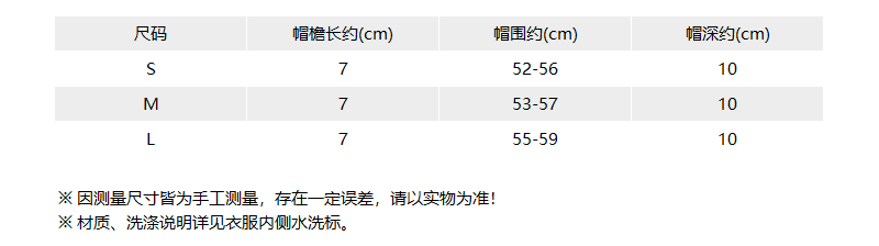 - 尺码说明