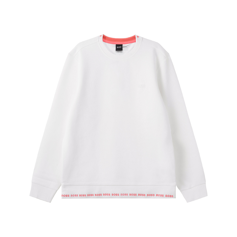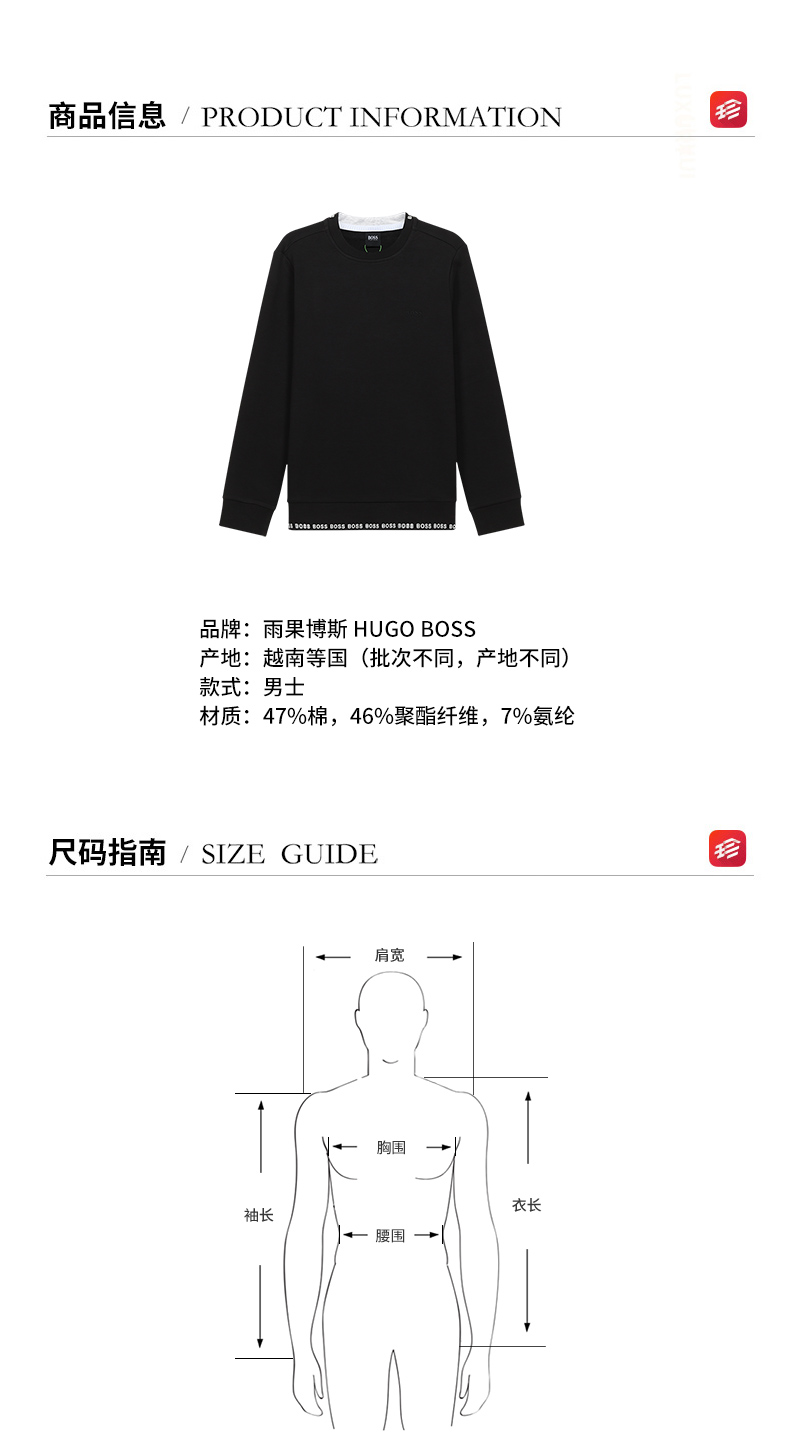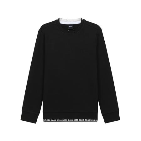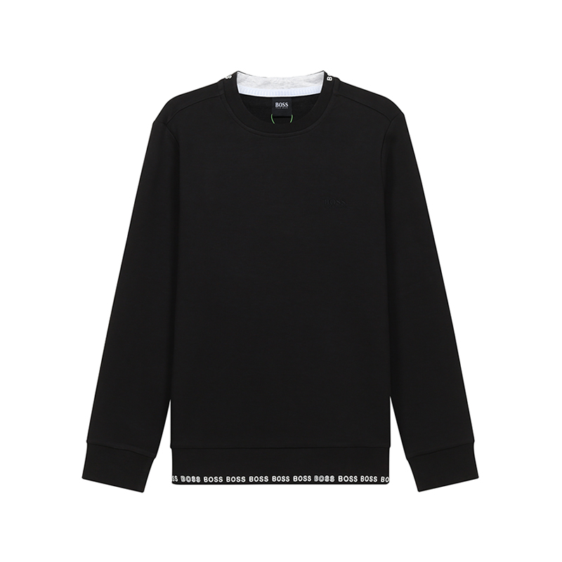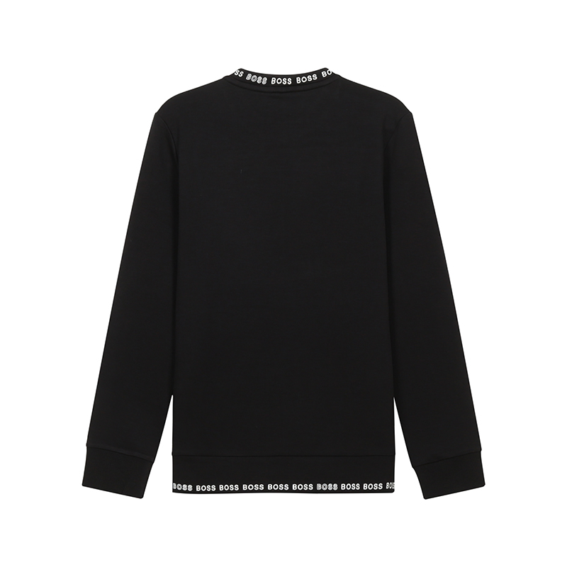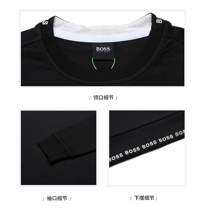 自营Hugo Boss 雨果博斯 男士棉/聚酯纤维圆领长袖卫衣运动衫黑色LOGO刺绣 50452472 001