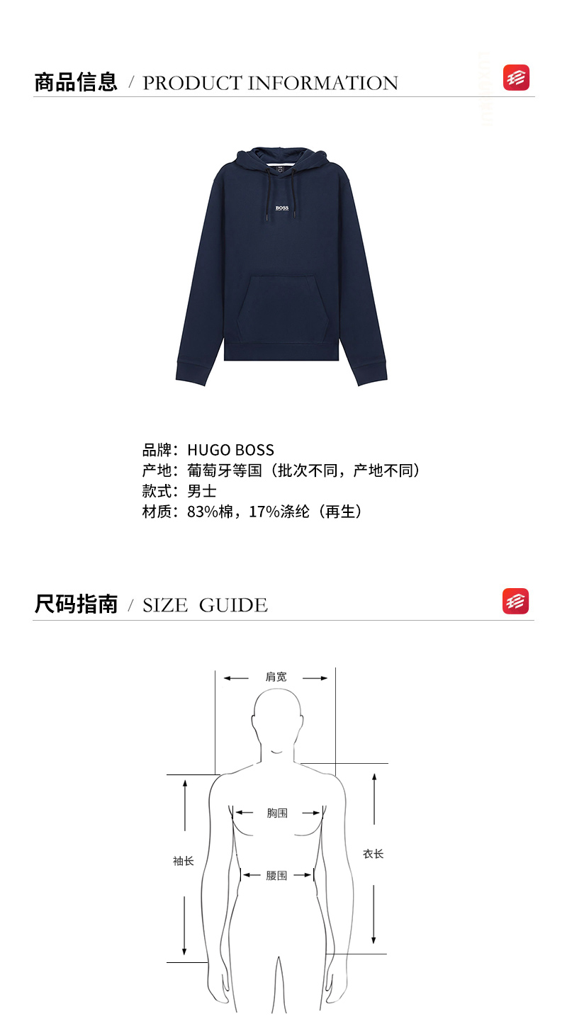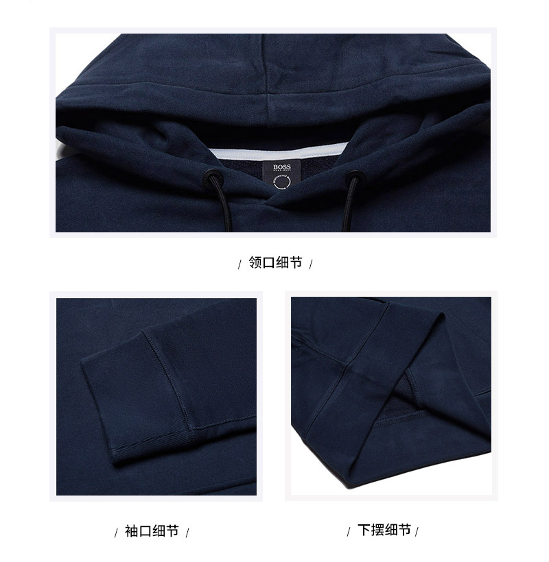 自营Hugo Boss 雨果博斯 男士棉质宽松版连帽卫衣运动衫暗蓝色 50459464 404