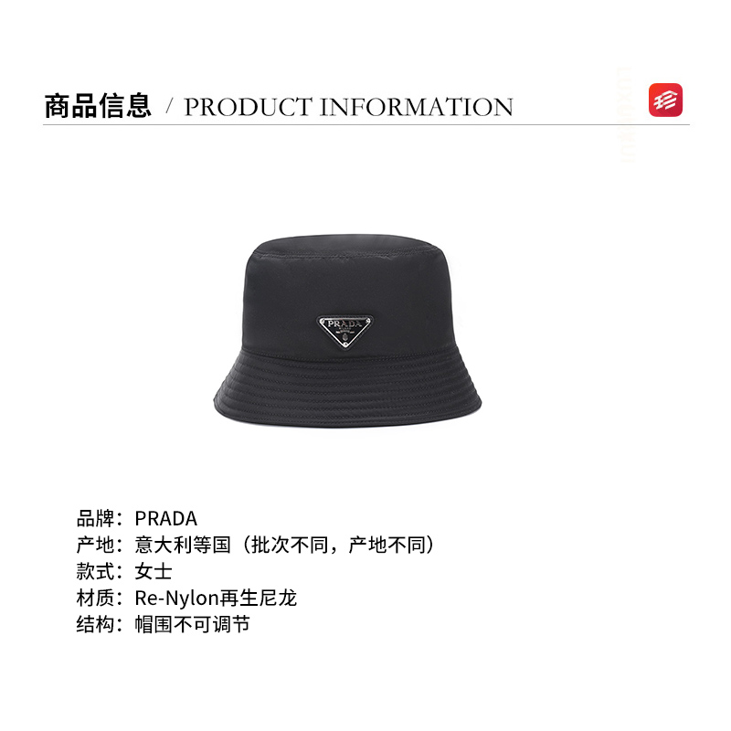 自营Prada 普拉达 女士Re-Nylon再生尼龙帽子渔夫帽黑色 1HC137 2DMI F0002