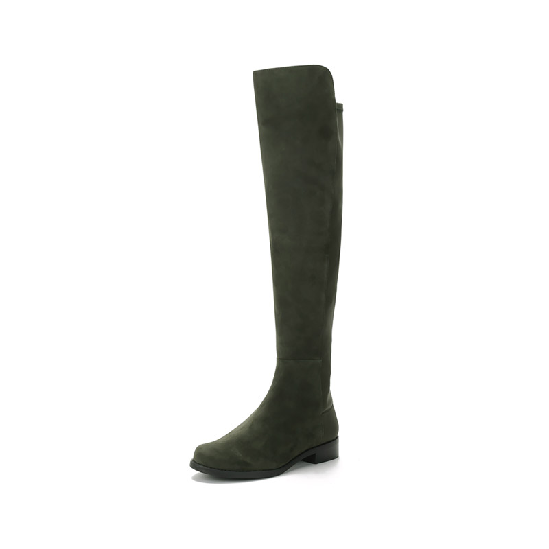 - 这款鞋靴采用绒面革制成,后部为稍短一些的微型弹力靴筒,打造出流畅的轮廓和舒适的贴合度。珍贵的时尚单品,可搭配连衣裙或牛仔裤。