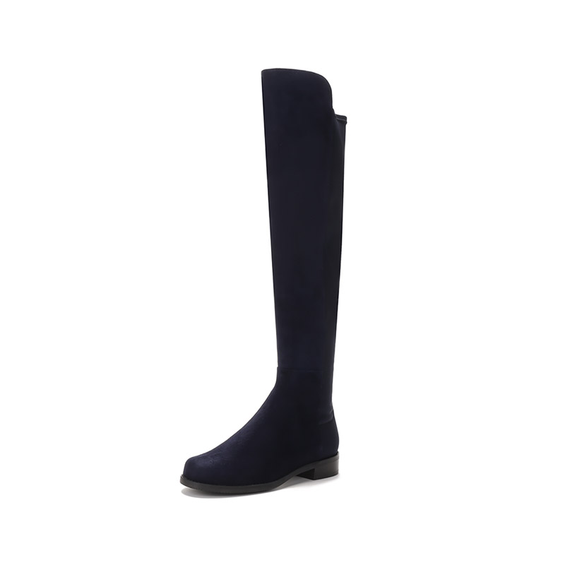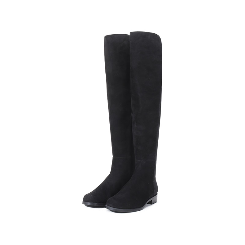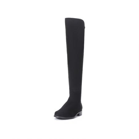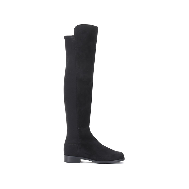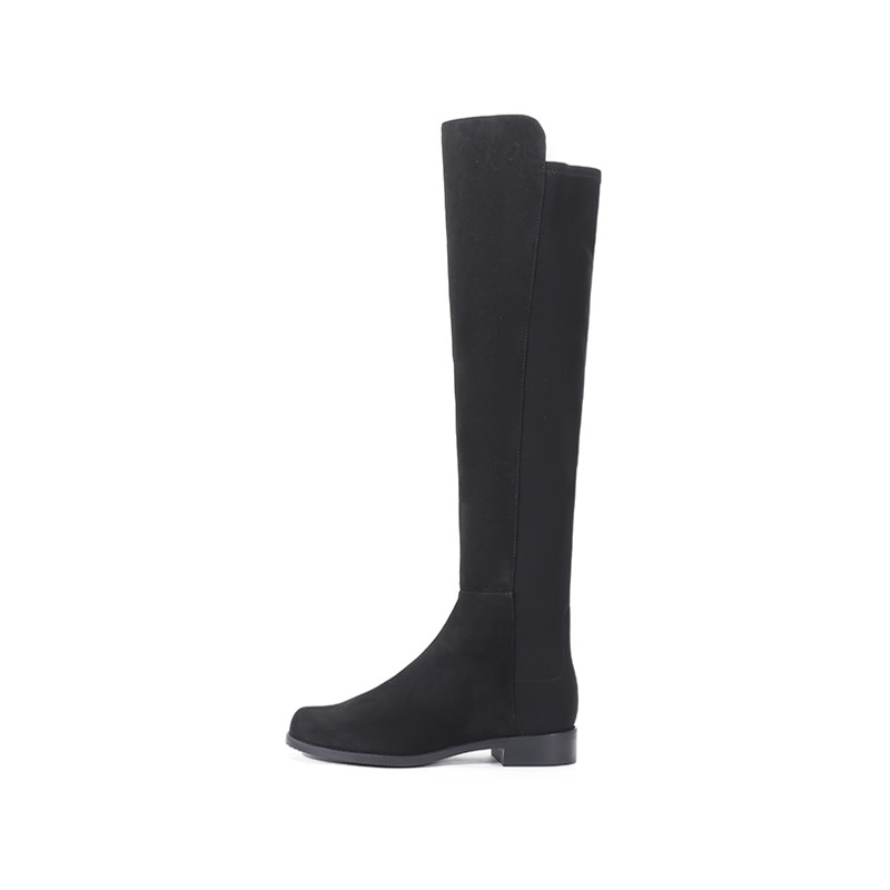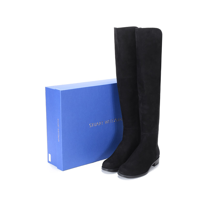 自营Stuart Weitzman 思缇韦曼 女士绒面革/织物高筒靴长靴黑色 5050 BLK SRG SUE STR GABRDNE
