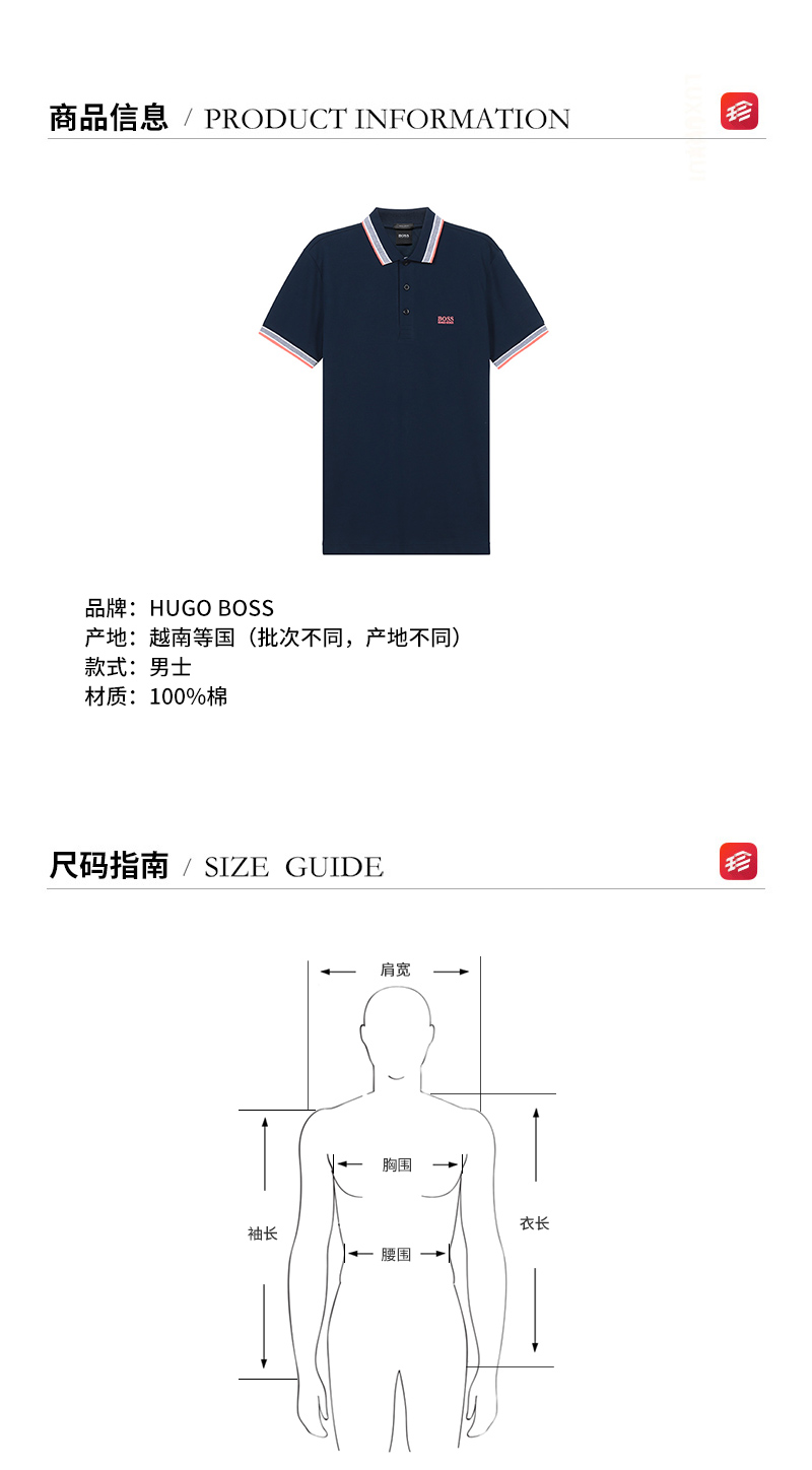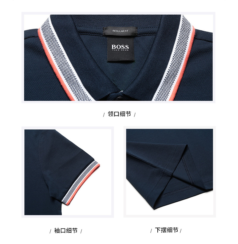 自营Hugo Boss 雨果博斯男士棉质短袖POLO衫深蓝色刺绣LOGO 50398302 408
