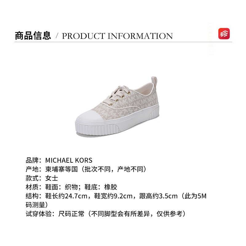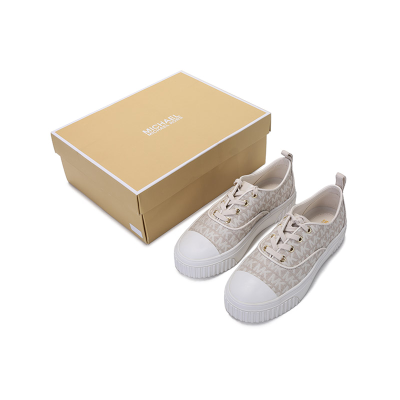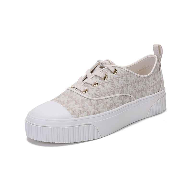 自营Michael Kors 迈克·科尔斯 女士织物Ollie系带休闲运动鞋板鞋厚底香草白老花图案 43T1OEFS3Y VANILLA