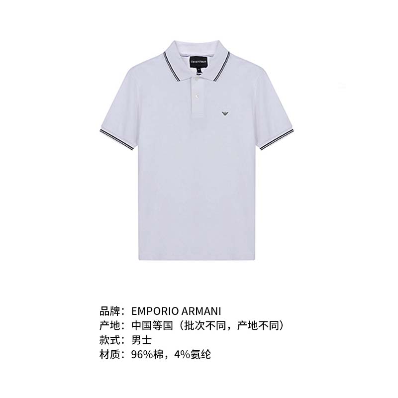 自营Emporio Armani 阿玛尼 新品 男士棉质短袖POLO衫白色 8N1FB4 1JPTZ 0100