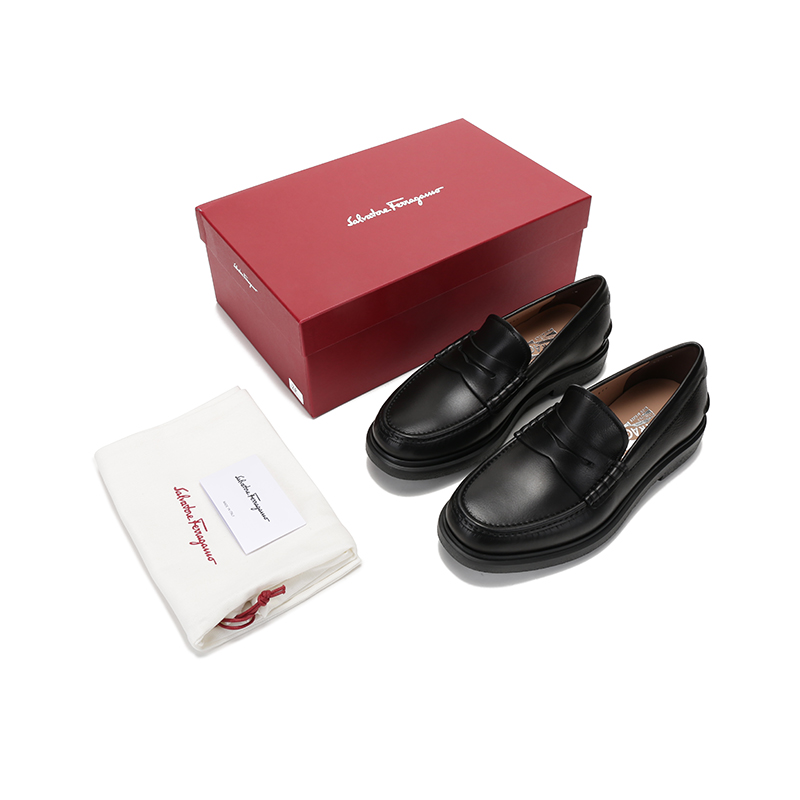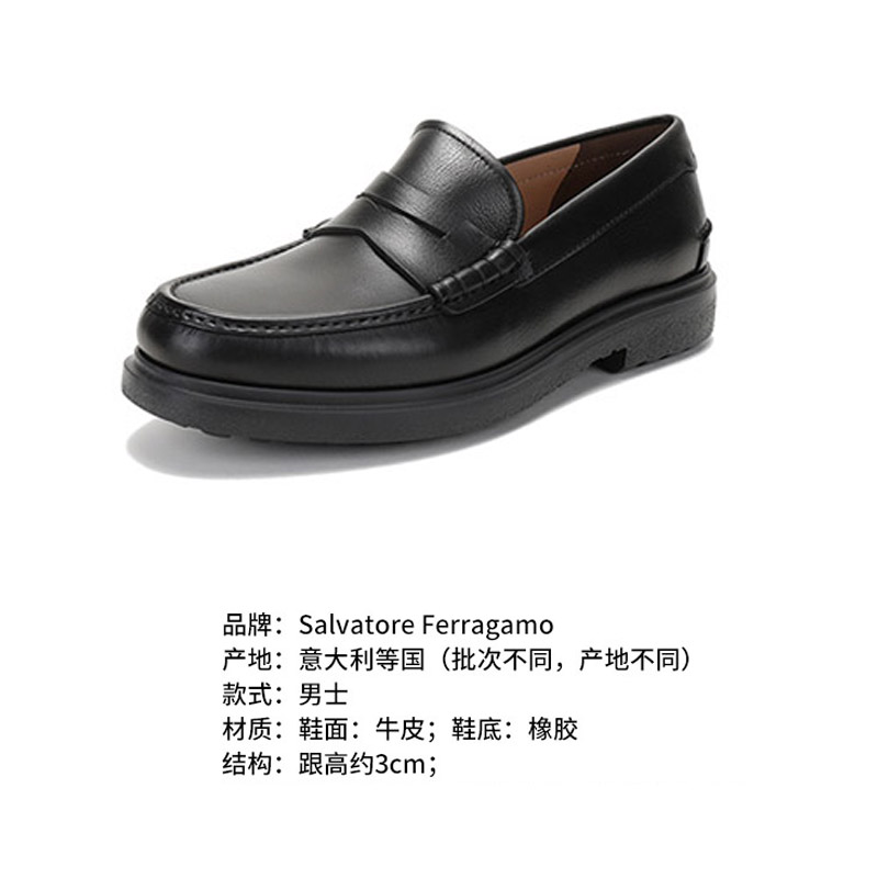 自营Ferragamo 菲拉格慕男士牛皮便士乐福鞋皮鞋黑色 0742243