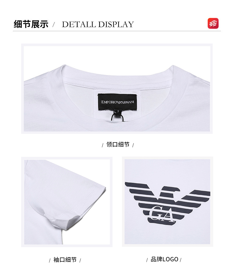 自营Emporio Armani 阿玛尼男士棉质圆领短袖T恤白色鹰标图案 8N1TN5 1JPZZ 0147