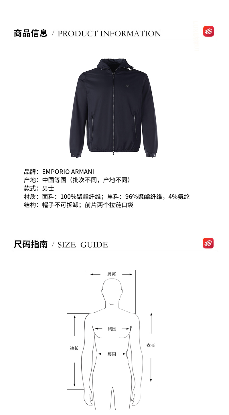 自营Emporio Armani 阿玛尼 【新品】男士深蓝色小鹰标贴饰连帽休闲上衣外套 8N1BQ0 1NZQZ 0920
