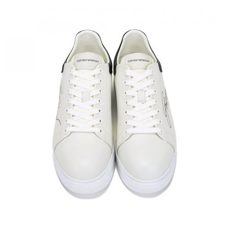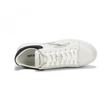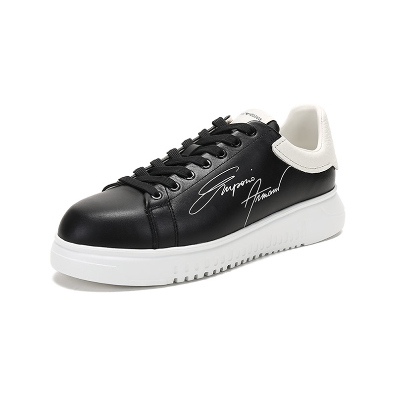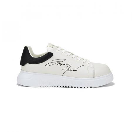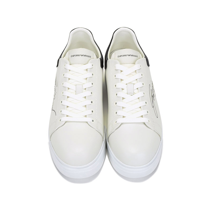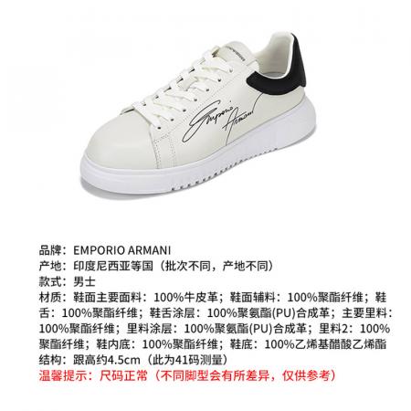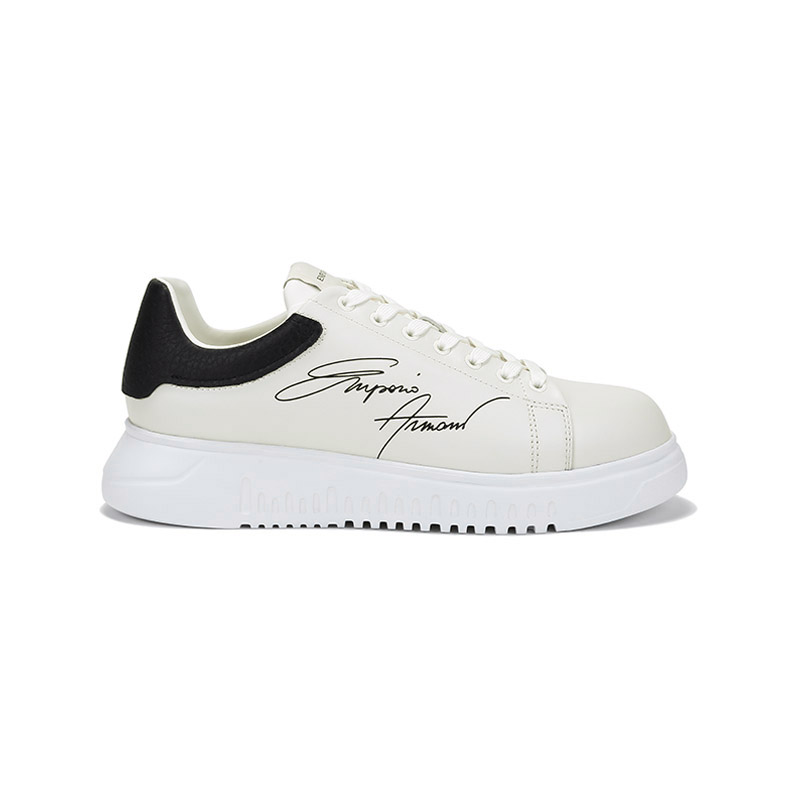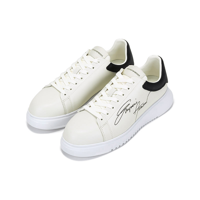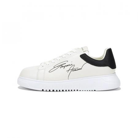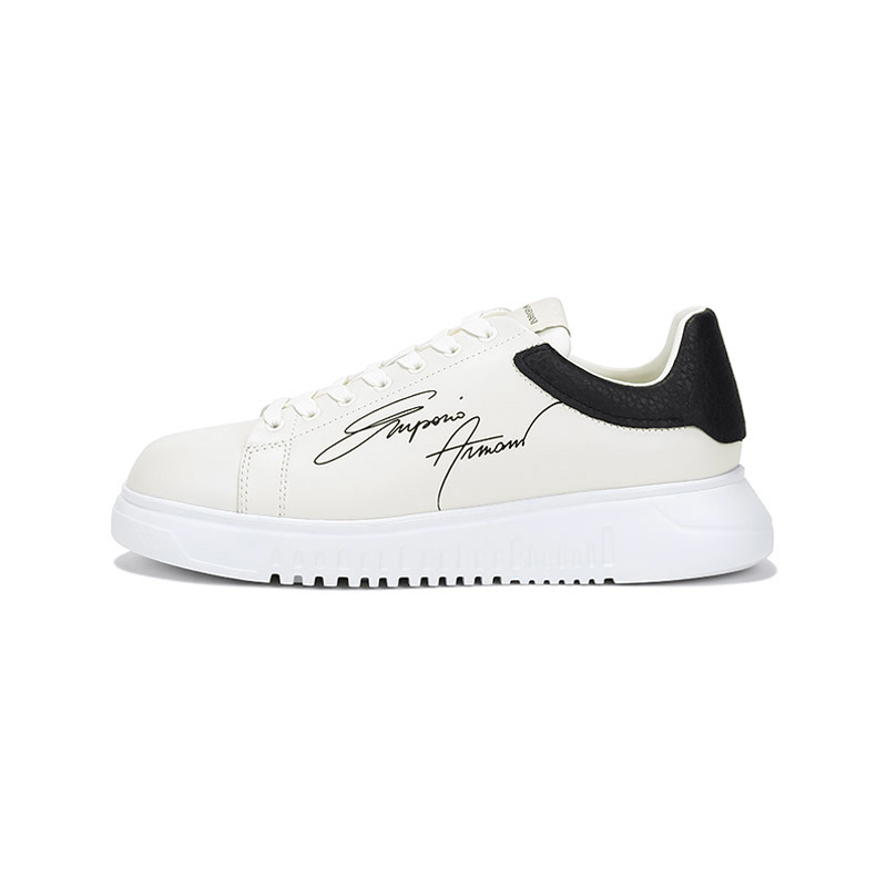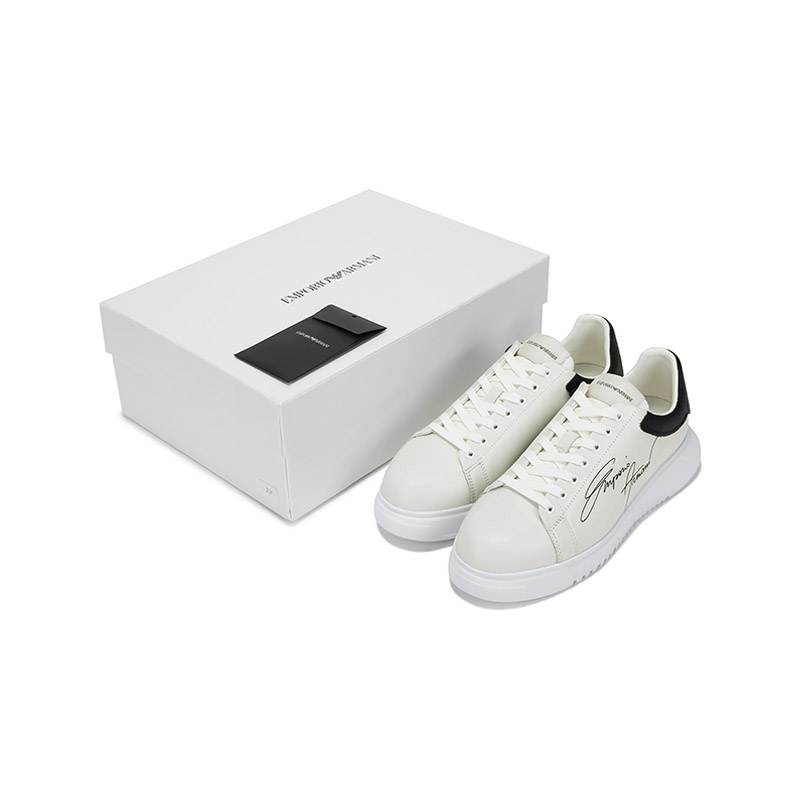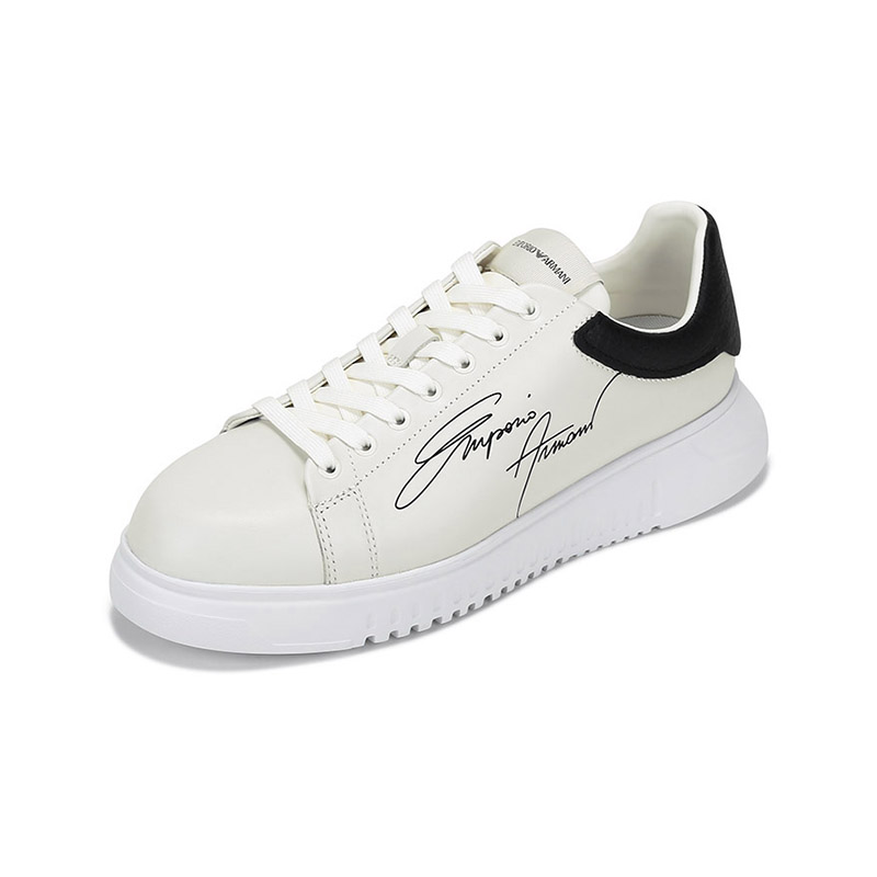 自营Emporio Armani 阿玛尼 男士牛皮革厚底系带休闲运动鞋板鞋白色黑尾 X4X264 XM670 N422