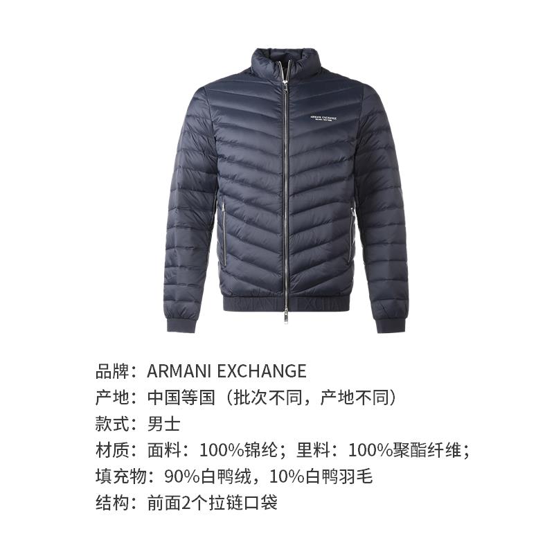 自营Armani Exchange 阿玛尼 男士锦纶轻薄款鸭绒羽绒服夹克外套海军蓝色 8NZB52 ZNW3Z 5578