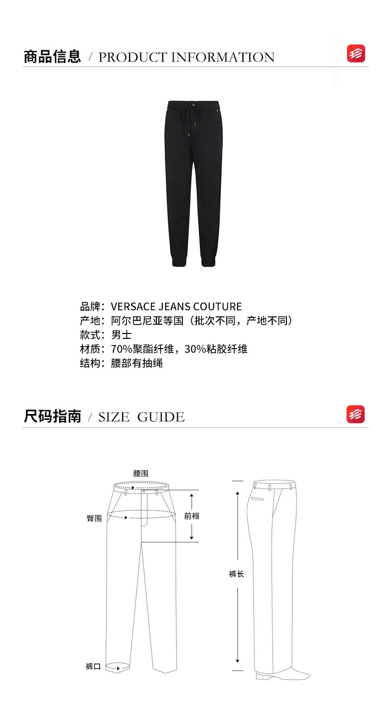 自营Versace Jeans Couture 范思哲男士聚酯纤维运动休闲裤长裤卫裤黑色 72GAA100 N0018 899