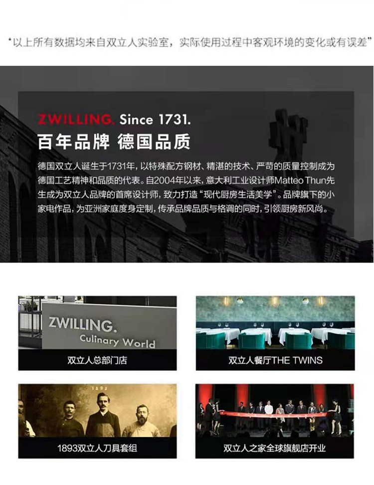 公元1731年6月13日,时值西历双子星座,Peter·Henckels(彼得·亨克斯先生)以双子座作为最初的构想,在德国美丽的莱茵河畔小镇索林根创立了双立人品牌。同时也揭开了这一人类现存最古老商标之一不老传说的序幕。他的后代约翰·阿布雷汉姆·亨克斯将公司名称改成Zwilling J.A.Henckels。如今,双立人拥有超过2000种的不锈钢刀剪餐具、锅具、厨房炊具和个人护理用品,使您在生活的每个角落感受到双立人赋予生活的品质与美感,使得双立人世世代代的使用者在心理上越来越认同品牌所创造出的价值感。双立人公司一直秉承着用创新科技制作高品质产品,并且为顾客提供优质的服务。德国双立人勇敢摆脱成功刀具公司、成功不锈钢锅具公司的自我记载,向自己构造的摩登厨房迈进,创造快乐厨房体验。