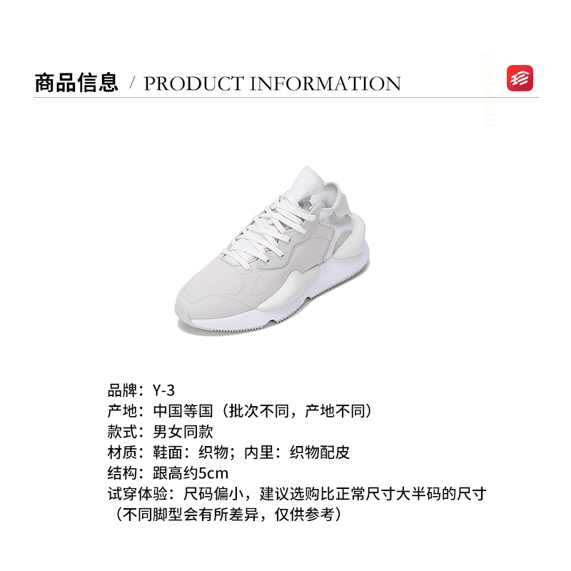 自营Y-3 男女同款织物KAIWA系带休闲运动鞋米色白色 GX6079