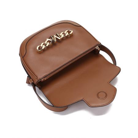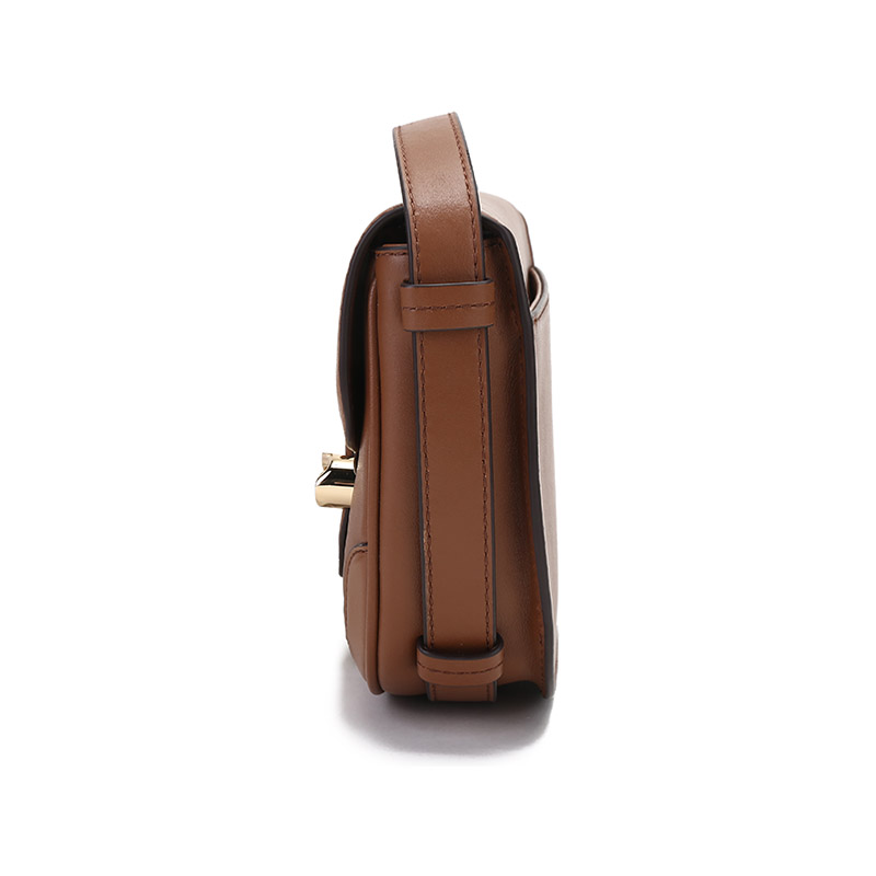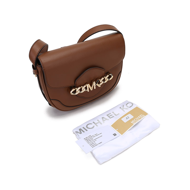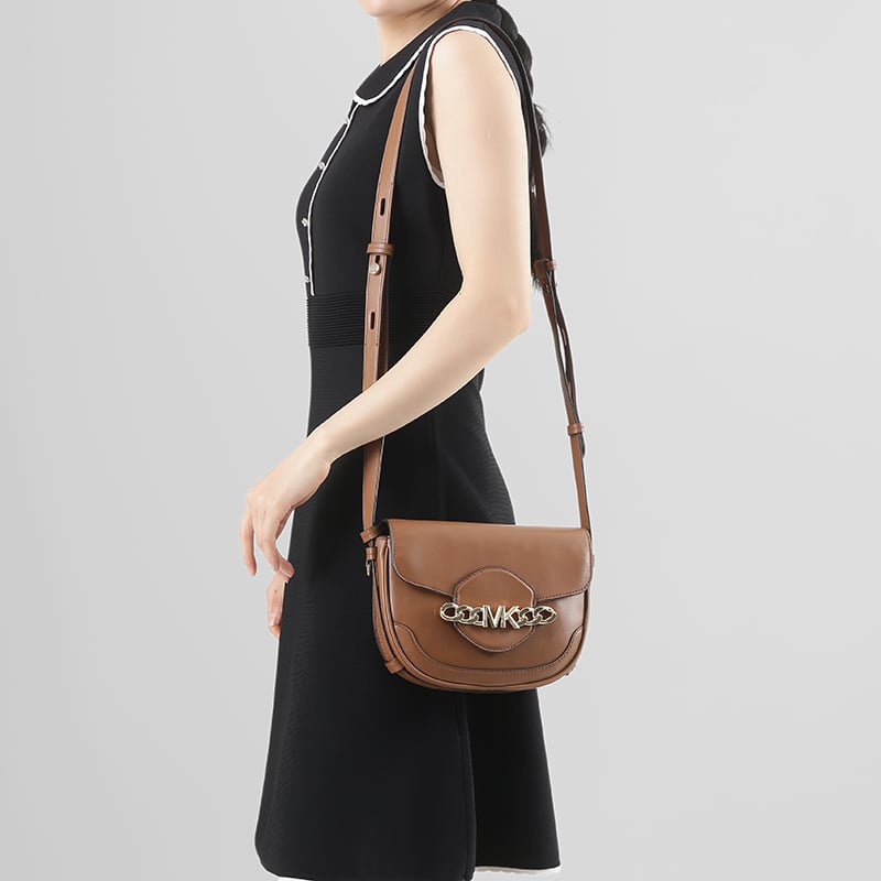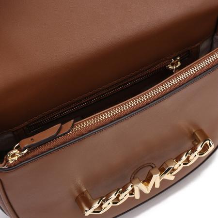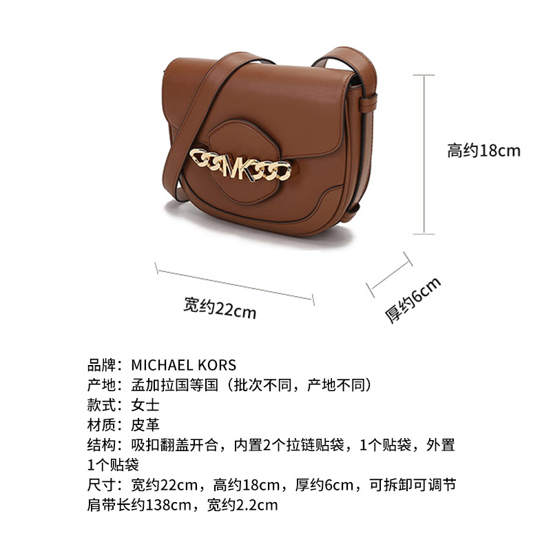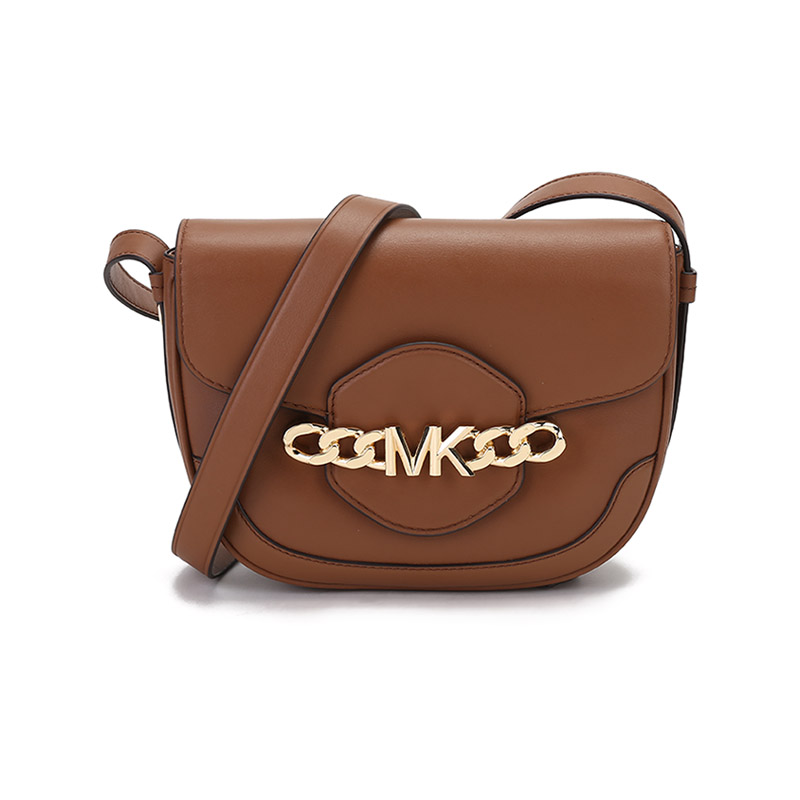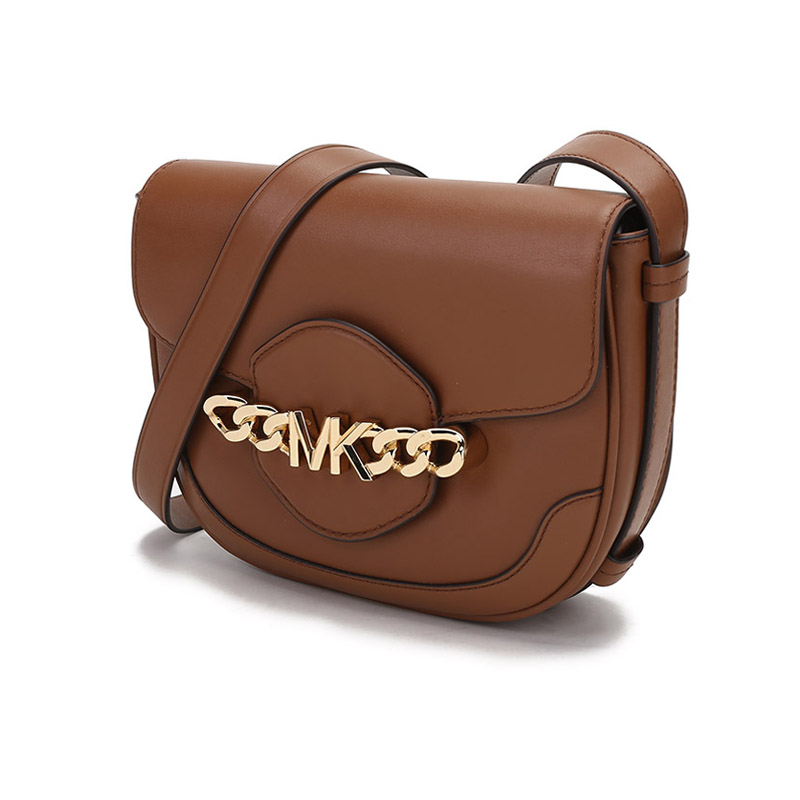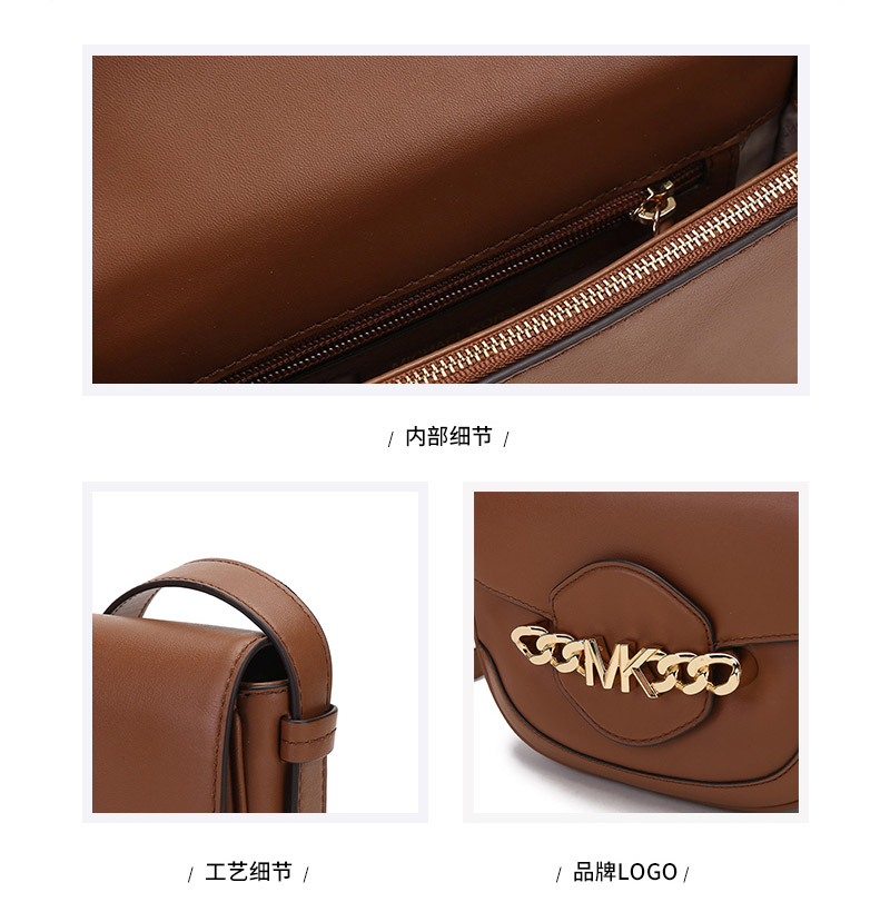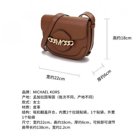 自营Michael Kors 迈克·科尔斯女包 女士HALLY系列皮革单肩斜挎包马鞍包牛皮棕 30F1G2HM6L LUGGAGE
