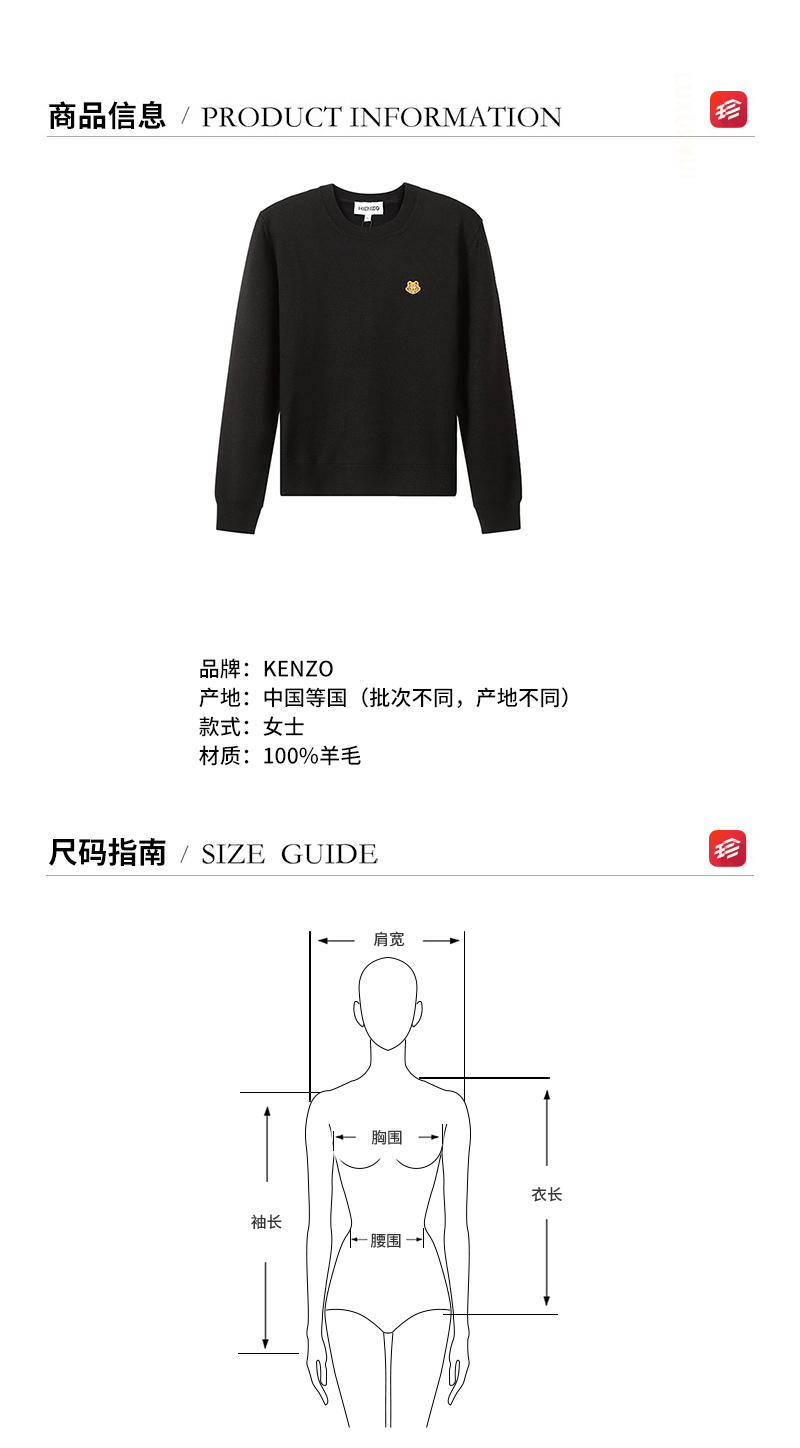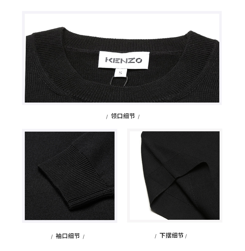 自营Kenzo 高田贤三 女士羊毛圆领长袖针织衫羊毛衫毛衣黑色小虎头刺绣 FB6 2PU642 3TA 99