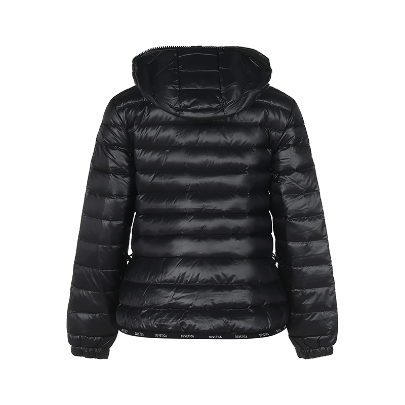 自营Duvetica 杜威迪嘉 女士PARMOLA系列聚酰胺纤维抽绳收腰鹅绒连帽羽绒服外套黑色 212 D5030352S00 1176R 999