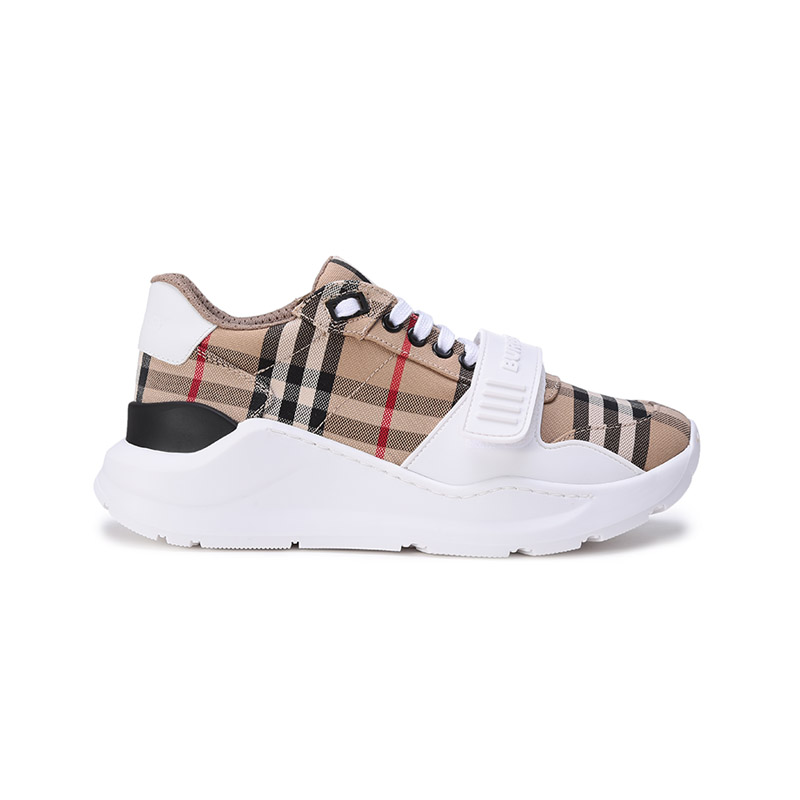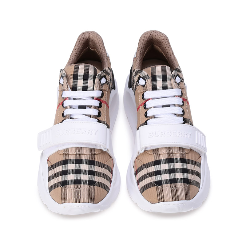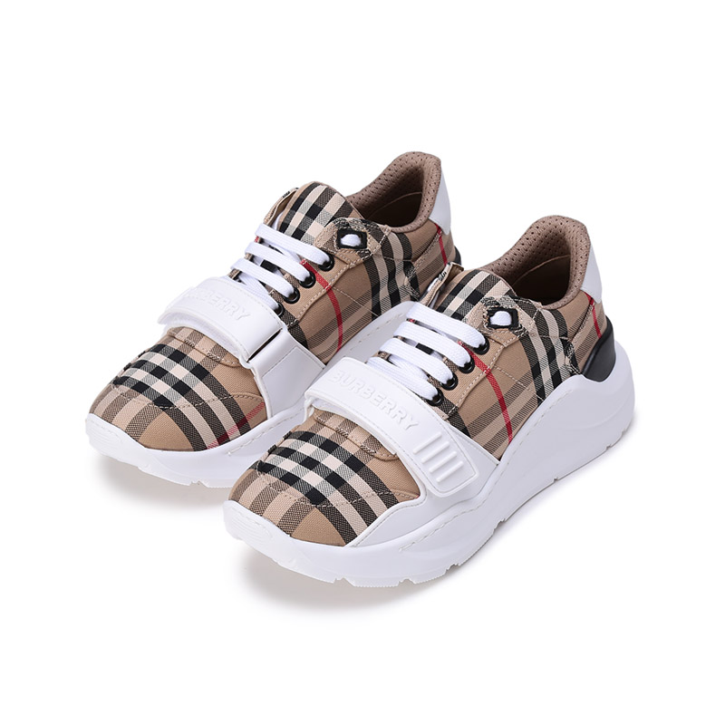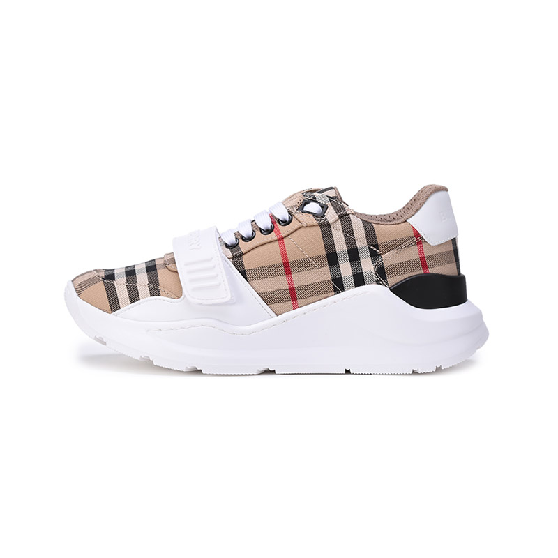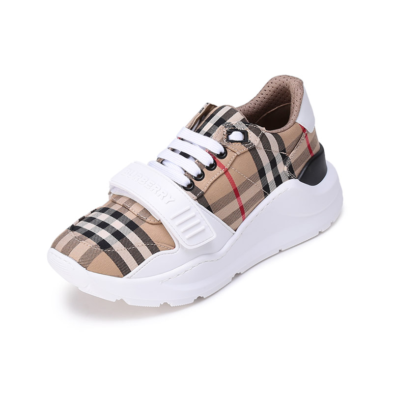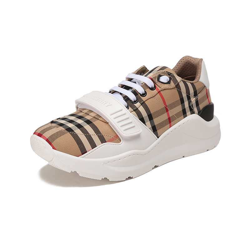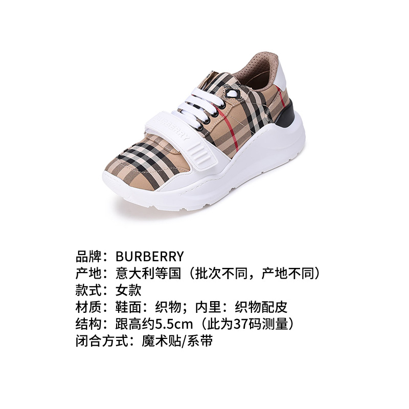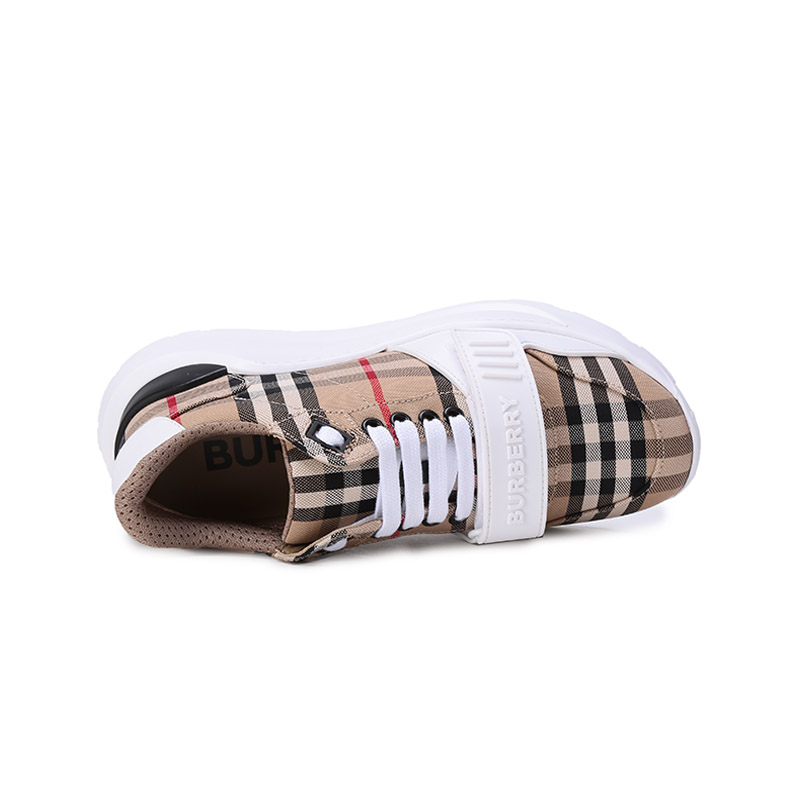 自营Burberry 博柏利 新品 女款织物系带休闲厚底运动鞋跟高5.5cm典藏米色格纹 80505091