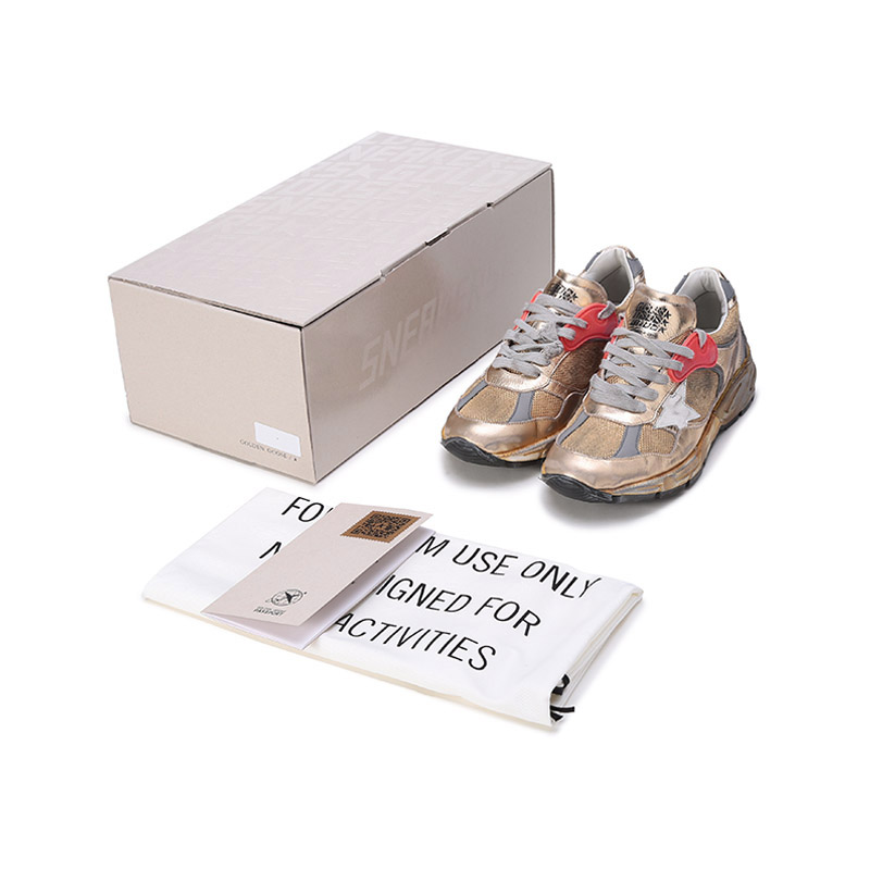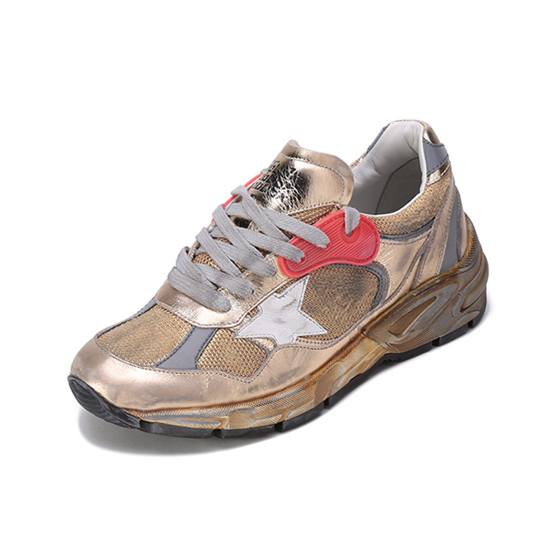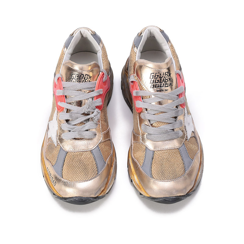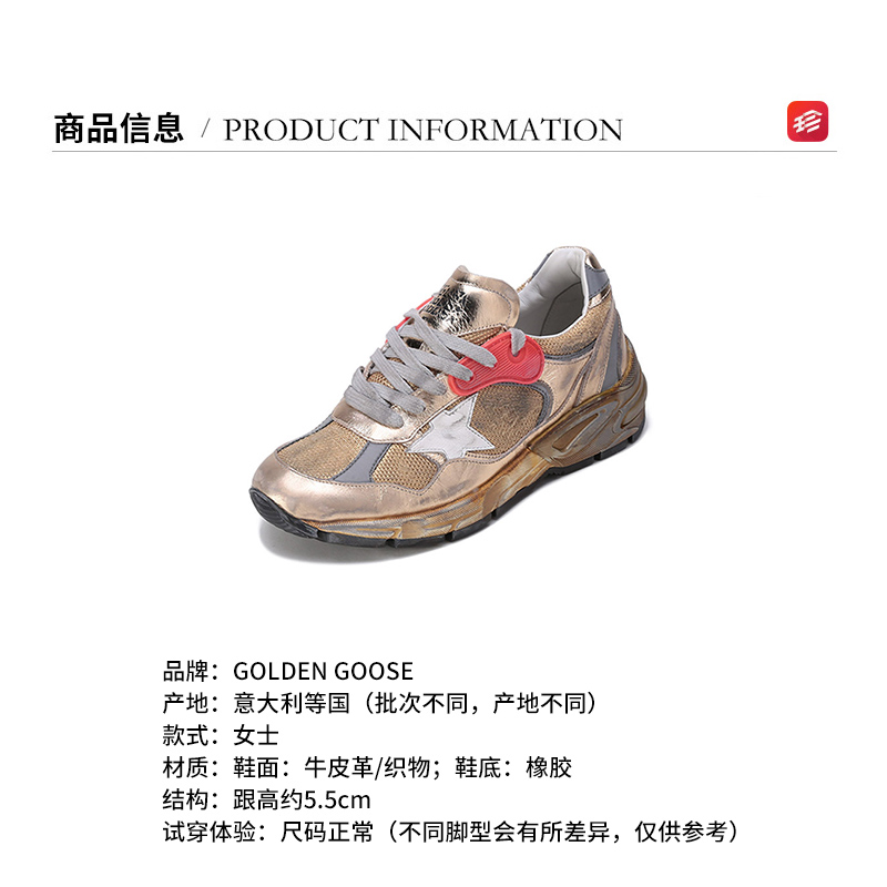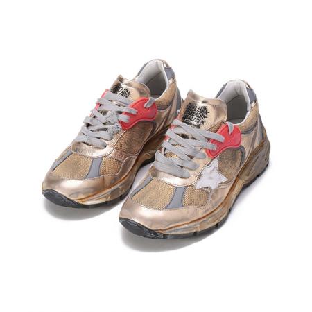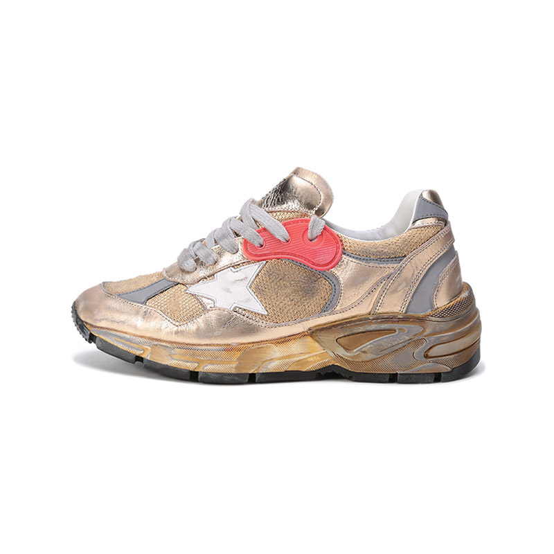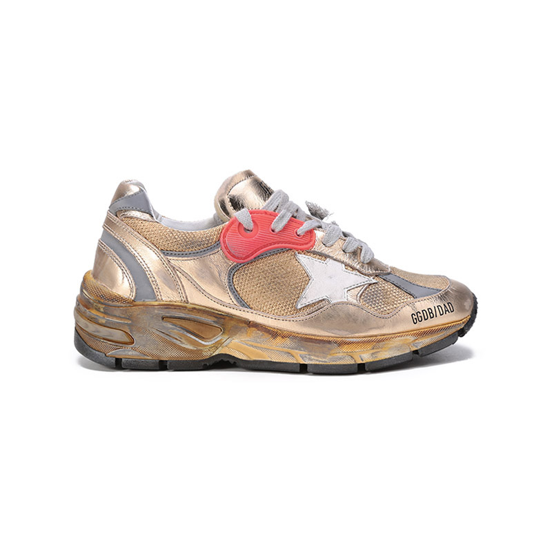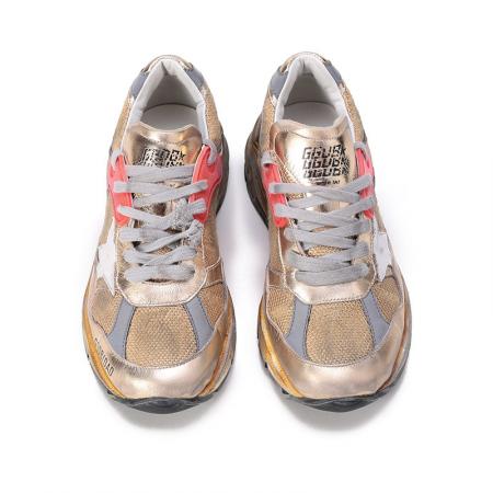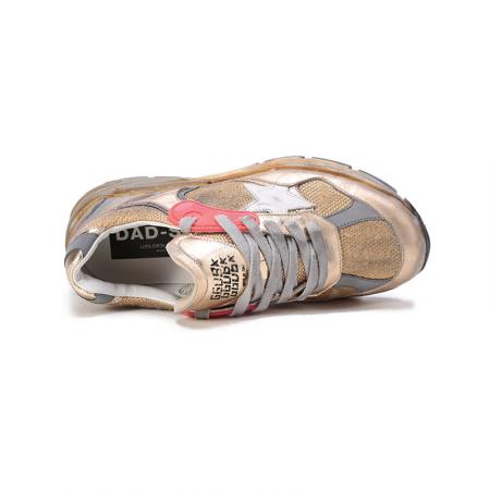 自营Golden Goose Deluxe Brand 黄金鹅女士牛皮革/织物Dad-Star系带厚底休闲运动鞋老爹鞋脏脏鞋跟高5.5cm金色玫瑰金拼色 GWF00199 F001211 65120