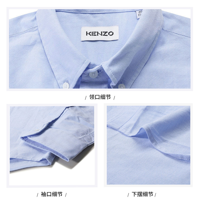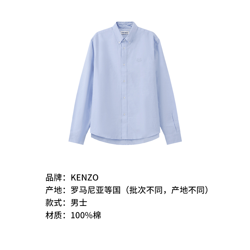 自营Kenzo 高田贤三 男士棉质长袖衬衫浅蓝色小虎头刺绣 FC5 5CH400 1LD 63